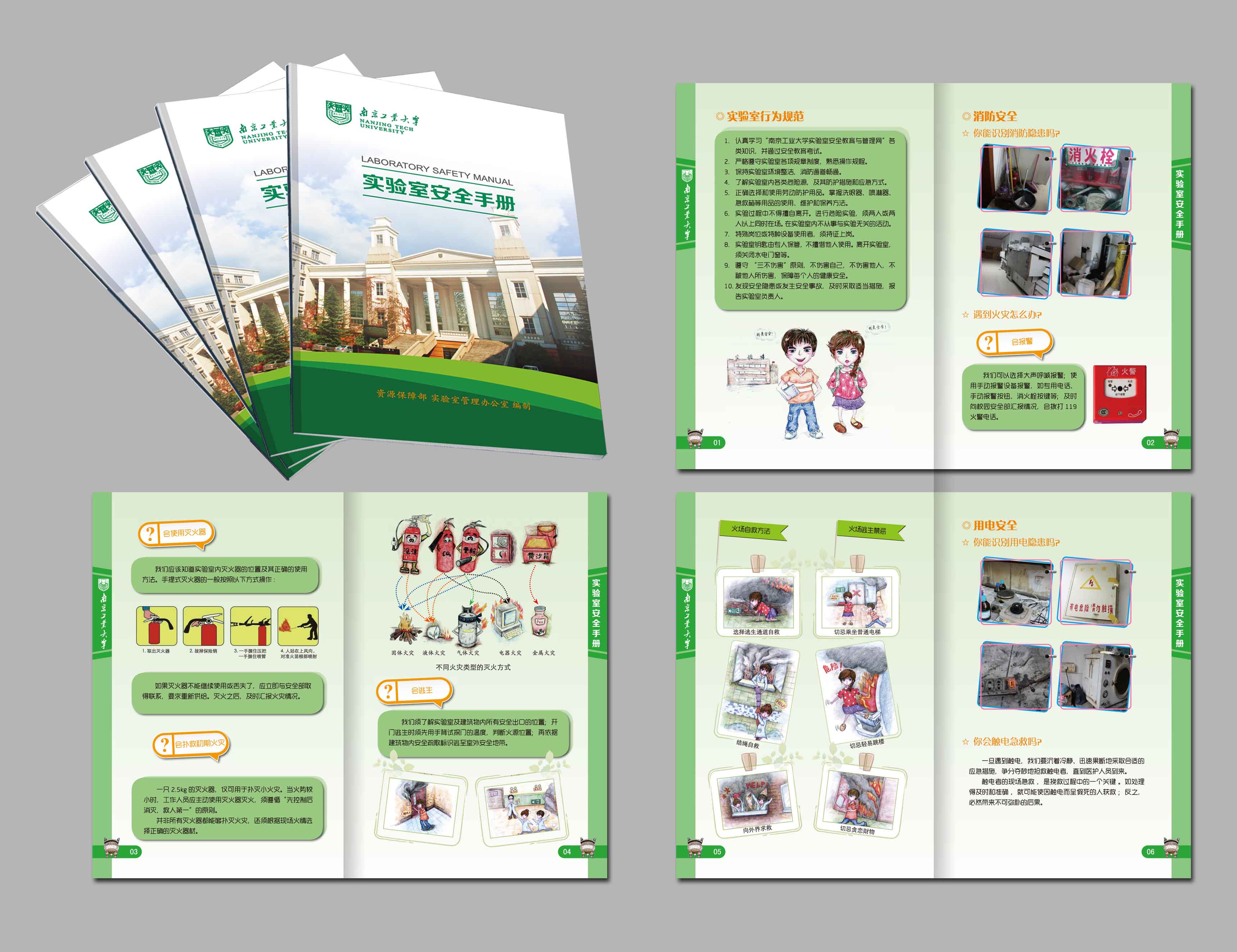 网站包含了安全教育考试系统、化学品管理系统以及安全手册,集实验室安全管理、教育、学习、考试等功能于一体。目前已实现数据库的自主建设和开发。网站创新性增设视频专区,以微电影方式述说安全常识与案例,为师生安全知识的学习提供了生动直观的途径;在我省高校中首家推出了设计精美、图文并茂的《实验室安全手册》,漫画插图均由艺术设计学院学生手绘,彰显南工特色。网站与手册的结合相得益彰,可供学生系统地学习与认知实验室安全规范;实验室安全教育考试系统的开发使用,进一步推进了实验室安全准入制,目前已完成2015届毕业班5000余名学生的考核,并将分阶段覆盖全校3万名师生。