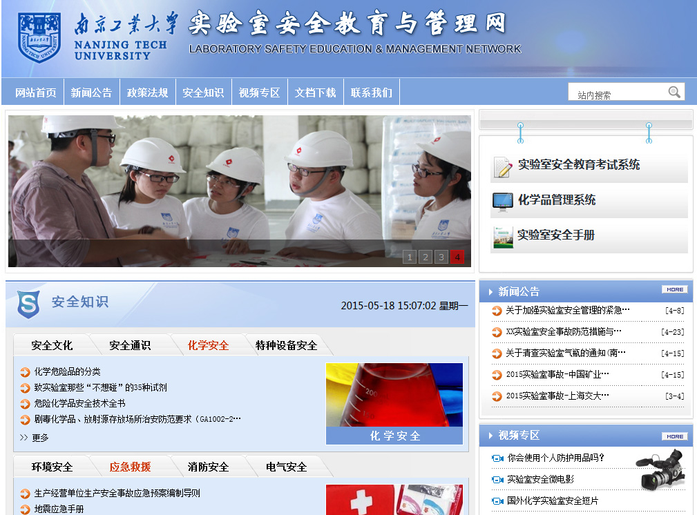 为响应南工建设“综合性、研究型、全球化”大学的号召,积极学习国内外高校实验室先进的管理经验,打造全方位的实验室管理体系,构建安全教育管理长效机制,资源保障部实验室管理办公室推出了伟德victor1946实验室安全教育与管理网 (网址:http://202.119.249.22/)。在历经近一年的调研、开发和试运行,于近日正式上线。