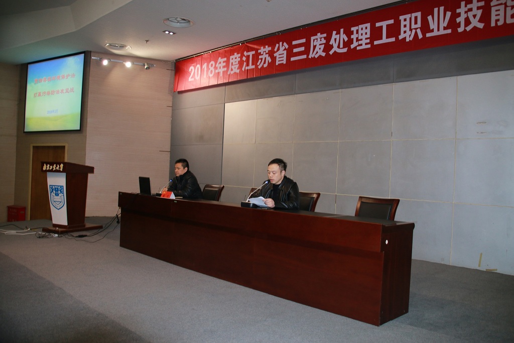 3月19日上午,由省环保厅主办、省环保厅宣教中心和伟德victor1946环境科学与工程学院联合承办的2018年度江苏省三废处理工职业技能培训在我校江浦校区逸夫图书馆一楼报告厅举行。环保厅宣教中心副主任庄新文,伟德victor1946环境科学与工程学院党总支书记马丽春,环保厅第三专员办、法规处、固管中心、土壤处、水处、大气处,伟德victor1946环境科学与工程学院等有关人员,以及来自江苏省各市县环保及相关企业单位共100多名代表参加本次培训开班仪式。