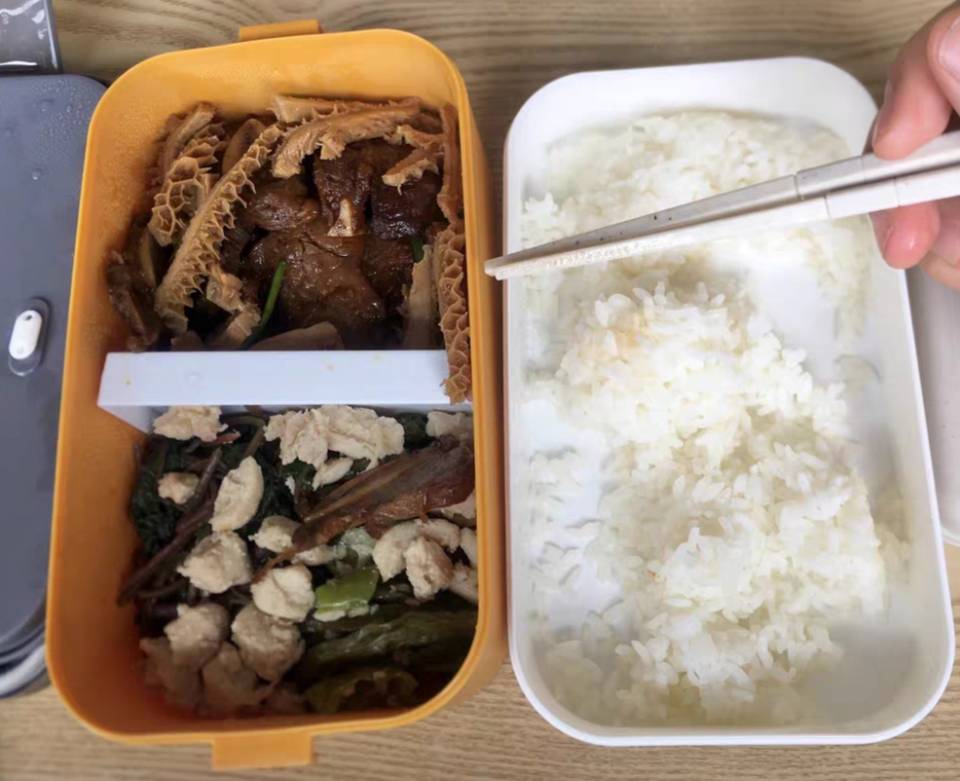 本次活动主要以线上打卡的形式开展。活动开始前,队员们通过伟德betvlctor1946源于英国主页君、QQ群等线上方式进行宣传。工作人员每天早晨在群内发起打卡,同学们上传自带餐盒的照片参与每日打卡,最后由工作人员进行每日统计。在为期一周的打卡活动中,共505人次参与打卡,减少白色污染近25千克,相当于减少碳排放12.5千克。同学纷纷表示本次活动非常有意义,今后会继续保持自带餐盒的好习惯。