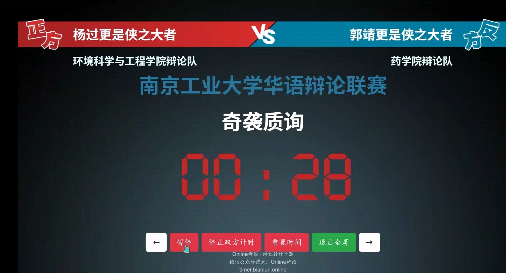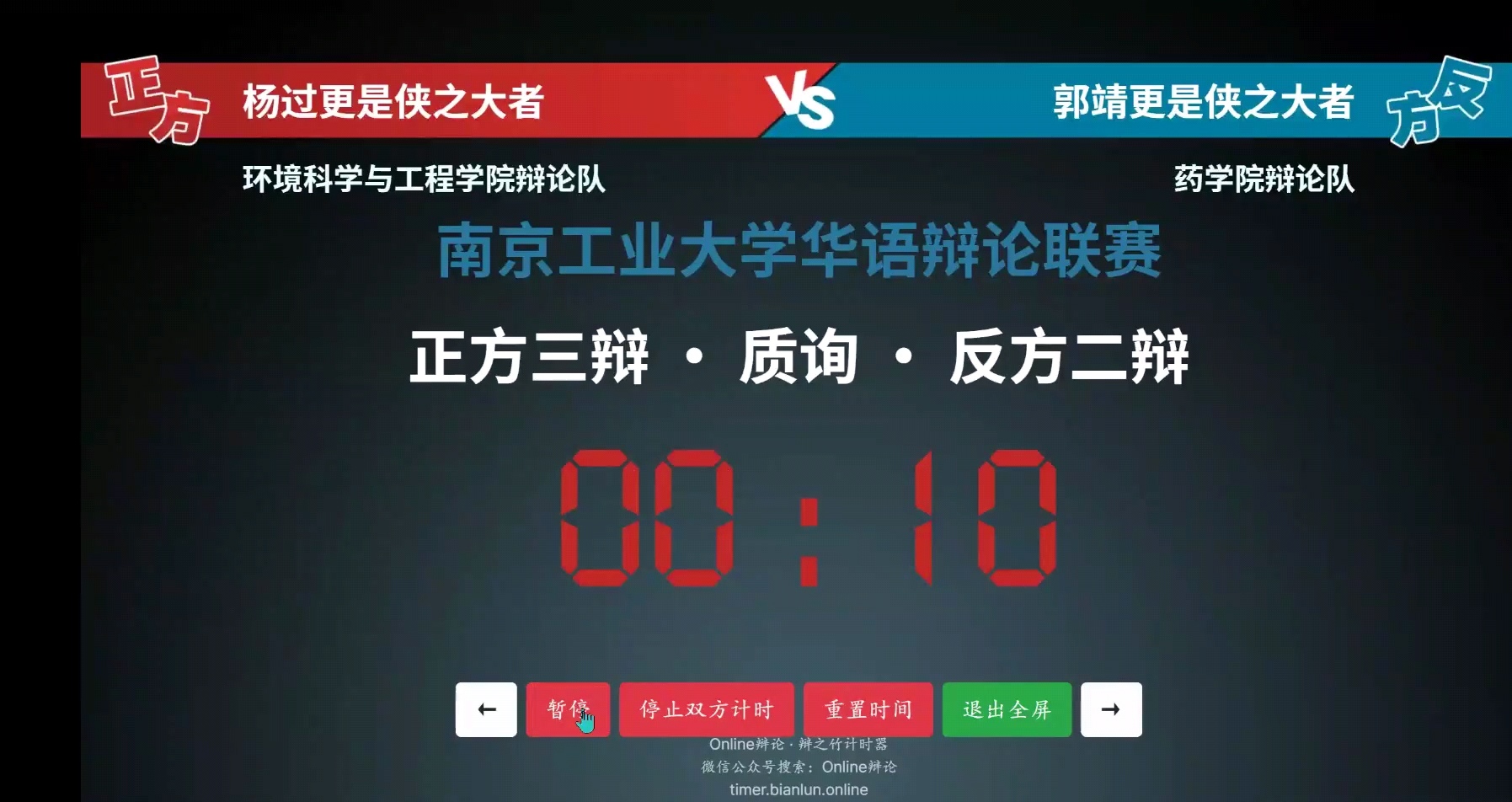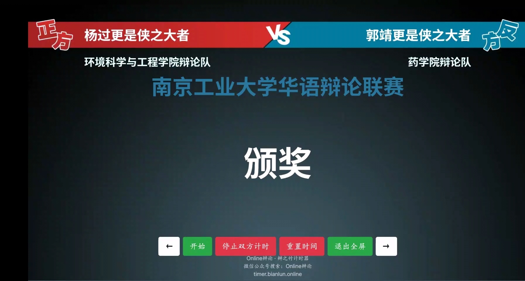 比赛开始,双方就“郭靖和杨过谁更是侠之大者”这个问题展开激烈的辩论。比赛双方赛前积极准备,查阅众多资料。我方认为侠是四个维度的综合行为。在杨过身上,我们可以看到他个⼈英雄主义和集体英雄主义的共存和并容,更符合侠的定义之下武功高强,⻅义勇为,行侠仗义,信守承诺,为国为民的各个方面。反方则认为今天谁更是侠之大者,即我们需要纵观两位大侠一生,去比较谁更践行了侠的“仁义”二字。最精彩的当属自由辩论环节,双方分别抓住对方辩论时的漏洞,进行有效抨击。现场金句频出,整场辩论可谓精彩纷呈。在评委们精准到位的点评之后,我院以11.5比8.5,3分的优势取得本场比赛的胜利,我方三辩徐梦瑶同学荣获最佳辩手称号。