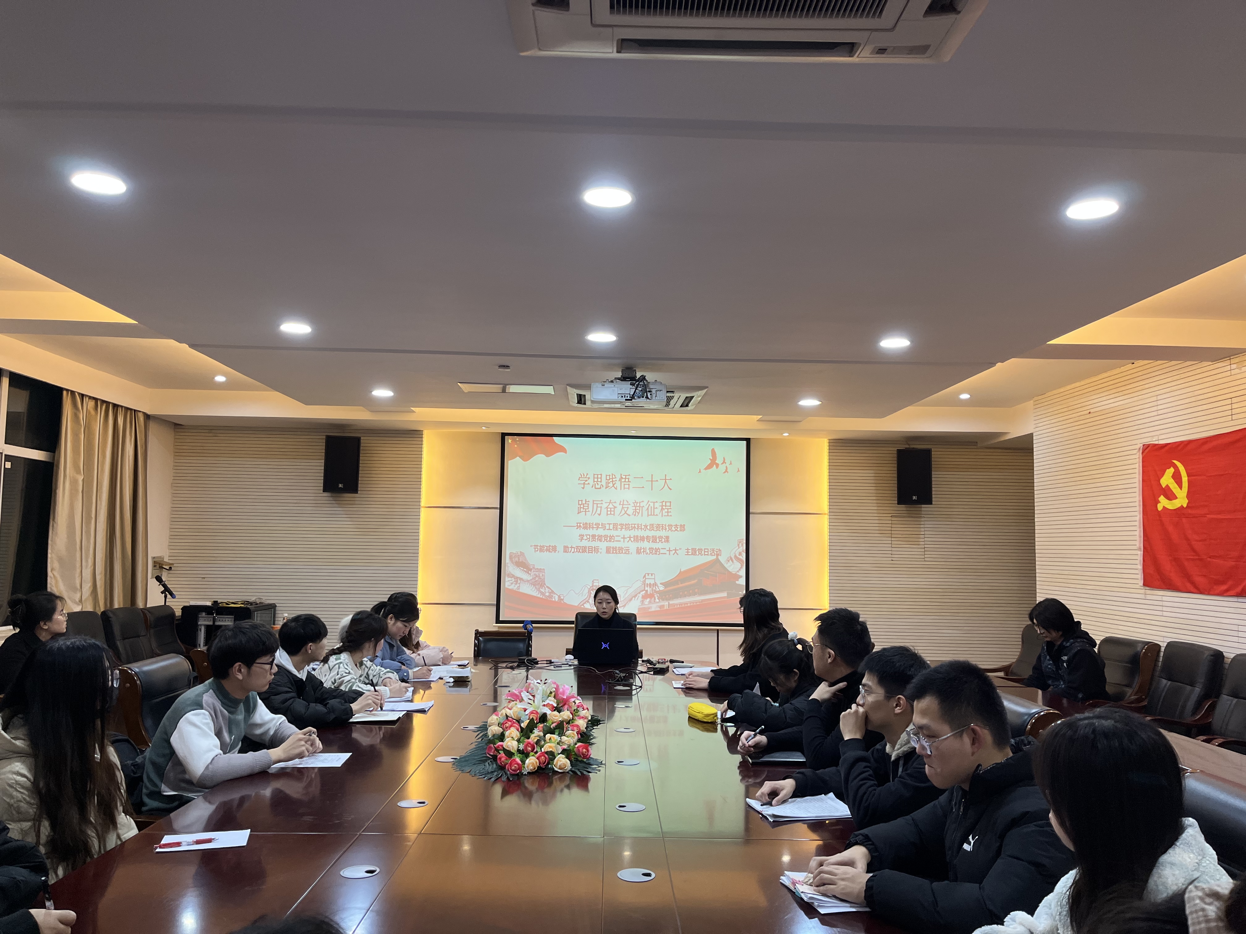 12月1日晚上,为深入贯彻学习党的二十大精神,进一步提高全体学生党员的思想觉悟,环境科学与工程学院环科水质资科专业党支部开展“学思践悟二十大,踔厉奋发新征程”专题党课活动,环科水质资科专业党支部全体学生党员、部分入党积极分子参加活动,活动由党支部书记辅导员陈曹鎏老师主持。