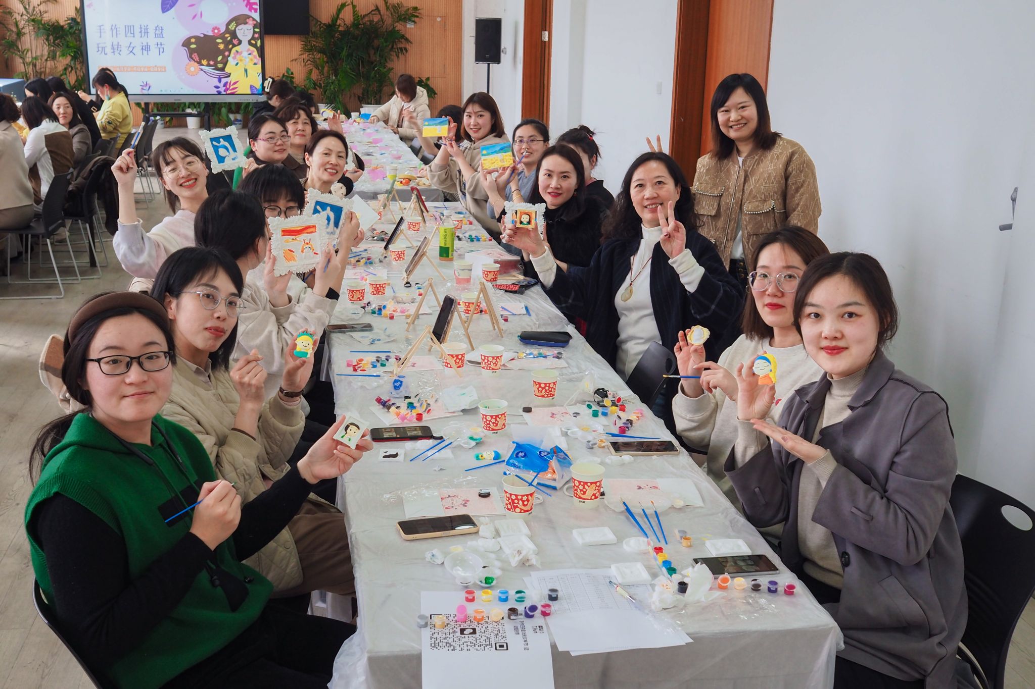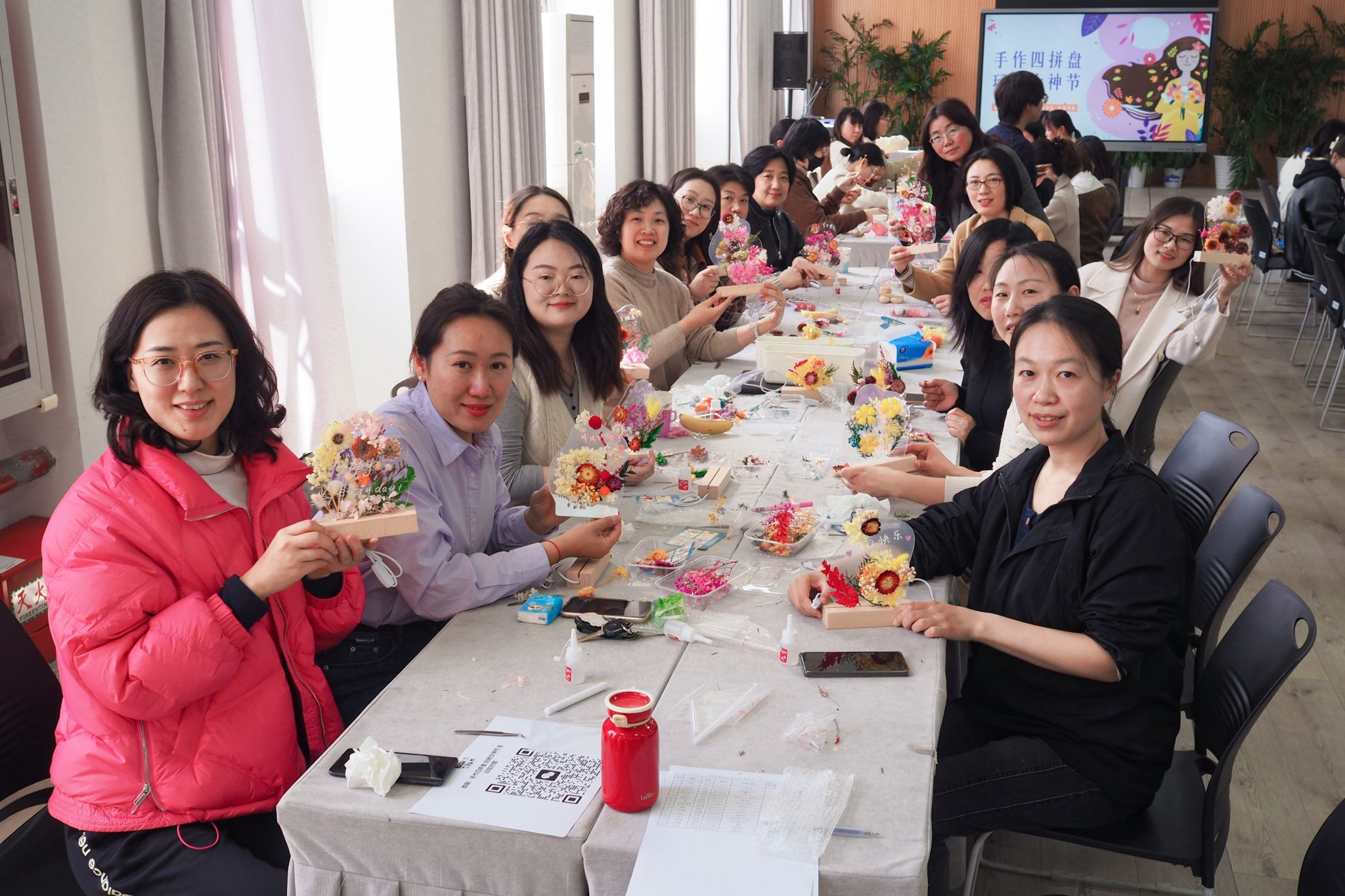 阳春三月,桃李争艳,我们迎来了一年一度的“三八”国际劳动妇女节。为了庆祝这个女性的专属节日,丰富我校女教职工的文化生活,3月6日下午,交通、城建、环境、能源学院共同组织开展了 “手作四拼盘 玩转女神节”活动。来自全校各个基层分工会的60余名女教职工欢聚一堂,分组动手制作了亚克力幸福花束,马赛克杯垫,永生花小夜灯和立体浮雕画,手作可以融入自身的设计,也把象征积极创新、温馨美好的美好祝福融入作品中,让一个个零部件、空白图案变成了一件件充满灵气的艺术品。手持亲手制作的作品,拍照、合影,完成的作品带走留作纪念,每个人的脸上都洋溢着幸福的笑容。此次活动,让广大女教职工温馨、喜悦的庆祝节日,增加了彼此间的交流,丰富了业余文化生活并留下美好回忆。