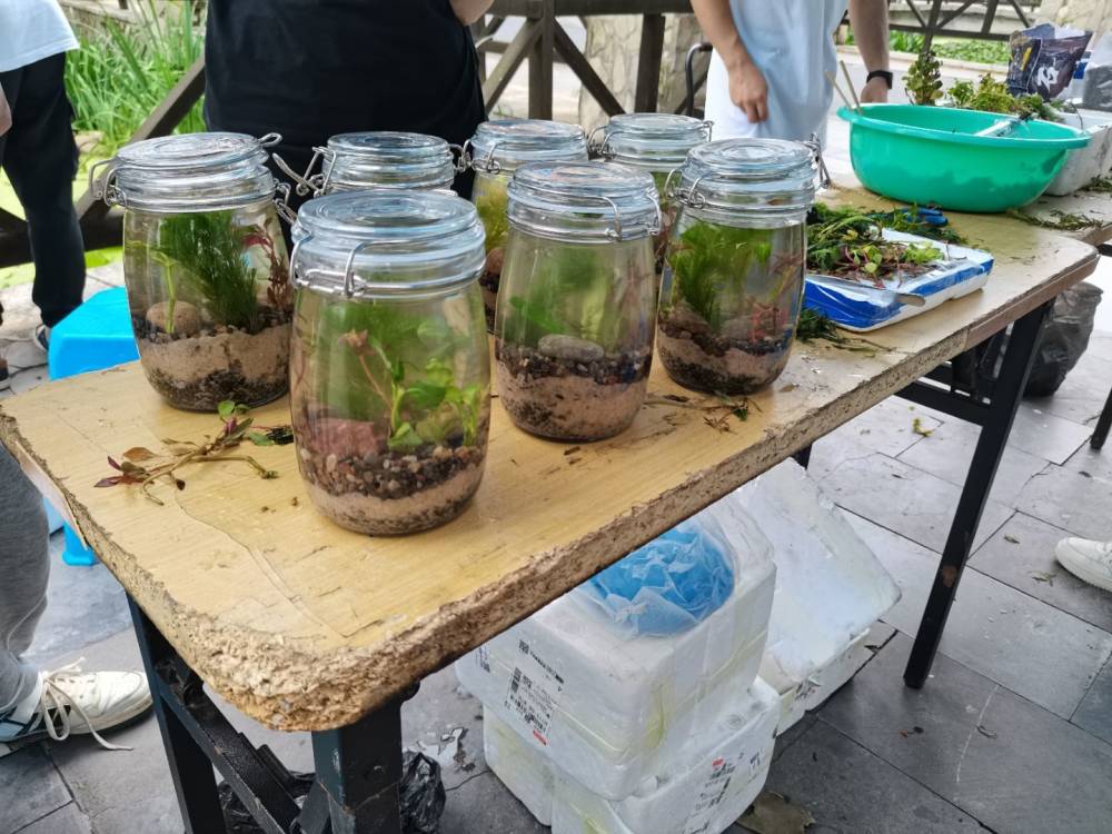开动开始前,志愿者们通过伟德betvlctor1946源于英国主页君等新媒体平台进行活动宣传,在活动过程中,同学们在志愿者的指导下将营养土颗粒、河沙层铺好,再种上形态各异的水草,最后为生态瓶注入湖水。同学们充分发挥想象力和创造力,构建自己的“瓶中天地”。活动结束后,参与的同学们纷纷表示:生态瓶的制作不仅增强了自己的动手动脑能力,而且增强了自己的环保意识。