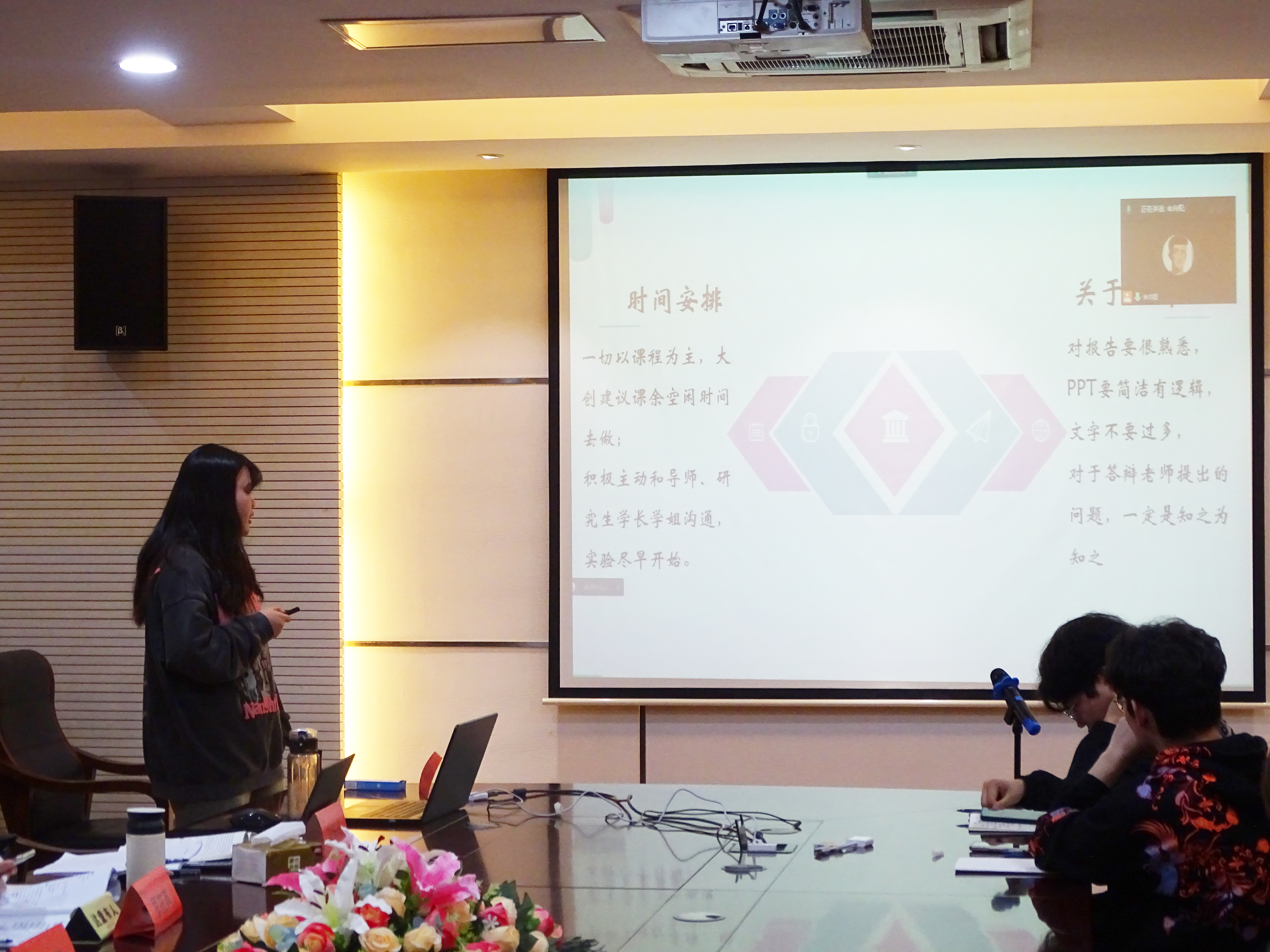 陈老师首先对2023年“大创”项目申报进行动员,鼓励对“大创”感兴趣的同学积极组队申报,明确申报“大创”项目的重要意义在于培养创新精神、提升科创素养。随后,陈老师对省级重点、省级一般、校级三类“大创”项目的结题要求进行了详细说明,鼓励同学们在做“大创”过程中以大创课题为依托申报各类科创赛事,并详细解读了挑战杯大学生课外学术科技作品竞赛、互联网+创新创业大赛、全国大学生节能减排社会实践与科技竞赛、“创青春”全国大学生创业大赛、水创意大赛等科创赛事的竞赛流程、竞赛时间、报名渠道及我院历年学生获奖情况。紧接着,我院四位优秀科创代表各自分享了自己的科创经验,刘乐乐、罗在苒、王露阳三位同学分别分享了文献检索、实验数据分析、申报书撰写技巧等内容;任迪同学为大家介绍了社科类“大创”项目的特点、文献查阅、课题选择等内容。现场同学认真聆听记录,互动积极,氛围良好。