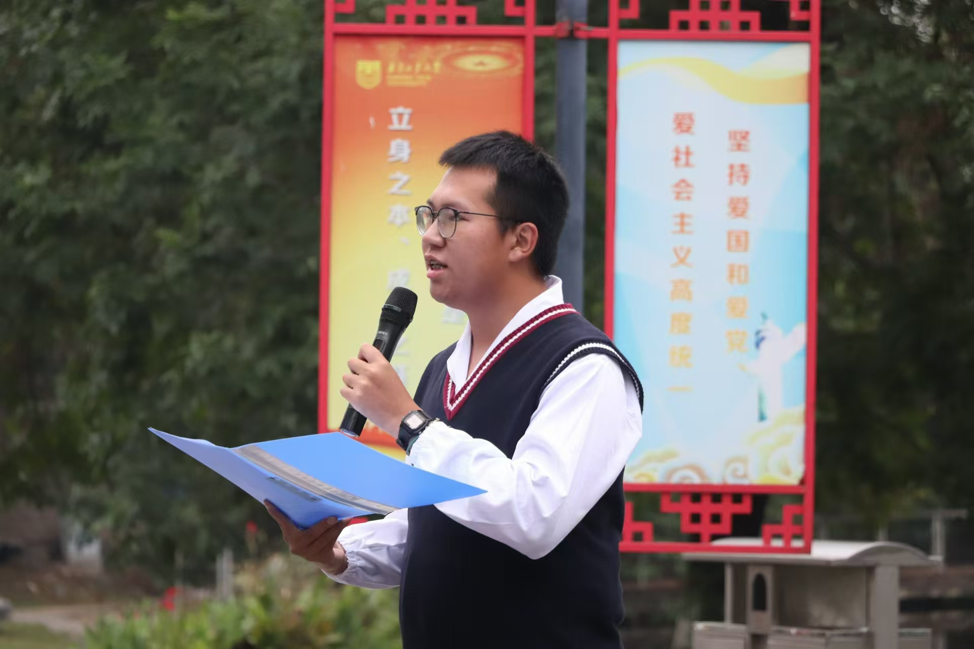为弘扬爱国主义精神,增强青年爱国情感和民族自豪感,10月21日,环境科学与工程学院在明正楼前举行“国旗下的青春告白”主题教育活动。学院团委书记、2024级新生辅导员陈亚会及全体学院2024级本科生参加活动。活动由水质2402班王皓冉同学主持。