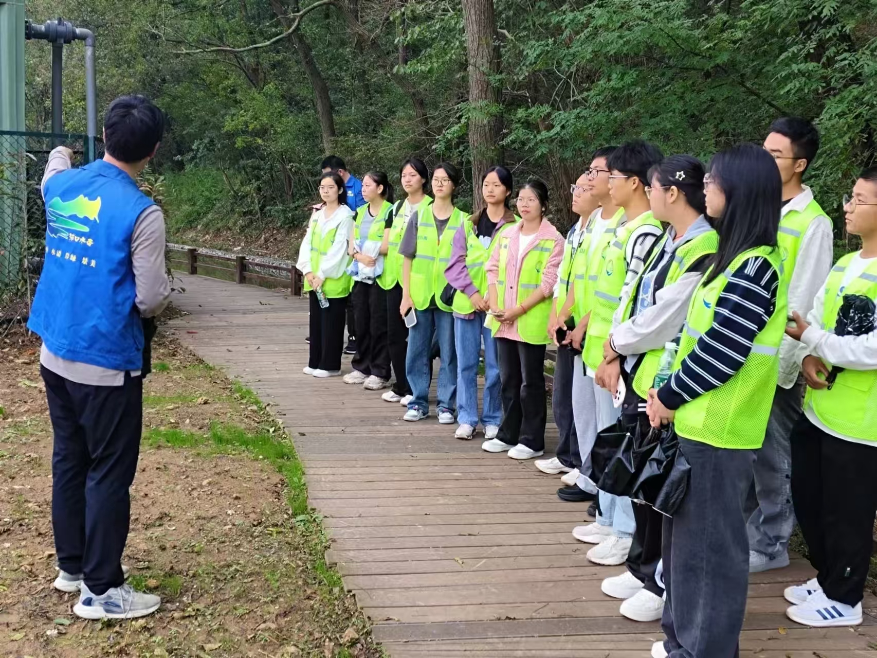 培训过程中,郭小娟首先为志愿者们详细讲解了巡河护河及文明劝阻的重点和方法,以提高公众在水库游玩的安全环保意识。随后,郭小娟带领志愿者团队前往生态知识长廊开展示范讲解,志愿者们认真聆听学习,全面了解节水知识、国家水情,并开展模拟讲解。