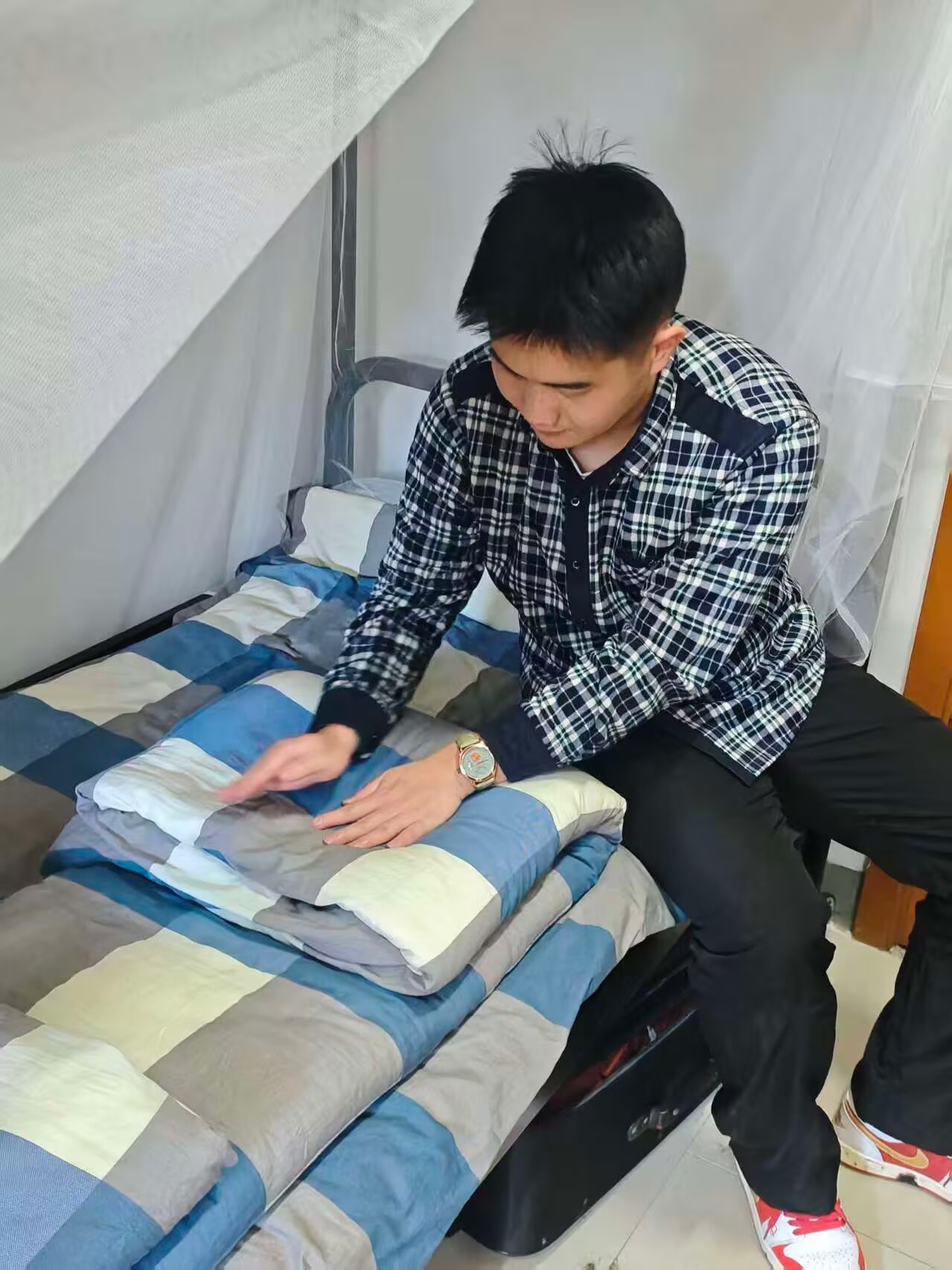 本次活动组织各年级学生骨干开展宿舍安全隐患排查,并对排查结果跟进整改,提升学生安全防范意识;组织新生集中观看《新生内务卫生教育》视频,特邀学院退伍大学生士兵环科2202班熊胜泽同学结合部队标准进行内务整理示范,现场演示如何将被子叠成“豆腐块”,一对一指导新生进行物品摆放和桌面收纳,提升宿舍内务水平;同时,面向低年级宿舍开展短视频创作和无烟标识设计大赛的作品征集和院内选拔,涌现出一批优秀作品,内容涵盖宿舍生活趣事、暖心小剧场、学习互助vlog等,设计成果融入环保、健康等元素,作品各具独特艺术风格,部分优秀作品推荐参加校级评比。活动期间,低年级各宿舍积极参与,展现了良好的精神风貌。学院将对表现突出的宿舍进行表彰奖励。