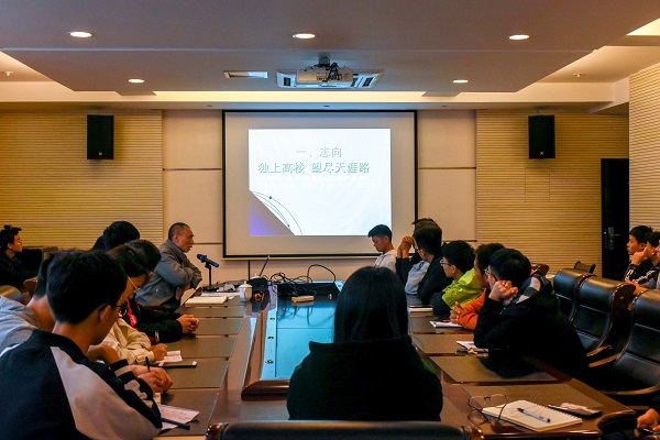 会议伊始,周迟骏老师借用毛主席的“莫道昆明池水浅,观鱼胜过富春江”鼓励同学们对未来充满希望。紧接着,周迟骏老师分别从四个方面告诉新生们如何过好大学生活。第一,要有“独上高楼,望尽天涯路”的志向,要独立、适应新形势;第二,要树立正确的思维方式和学习方法;第三,要学会为人处世,俭以养德,全面发展;第四,要尽早做好就业和考研的打算,规划好大学目标。2018级同学们非常积极,纷纷举手向周老师请教有关大学生活以及专业方面的问题,周老师耐心地为大家一一解惑,同学们获益匪浅。