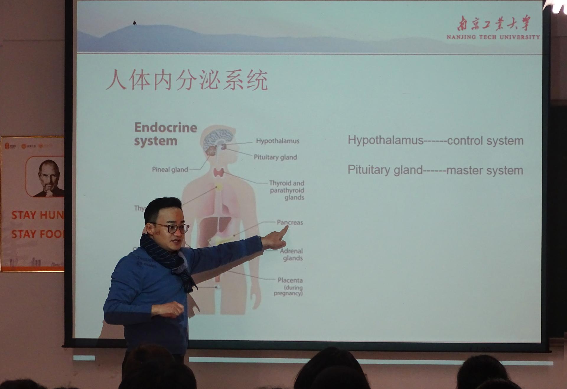 课程开始,何老师与同学们交流了学习环境专业的初心与目的,以自己的亲身经历与同学们讨论了“环境专业是做什么”这一话题,分享了自己起初学习环境专业时的迷茫与后期的成长,告诉同学们“21世纪是生物的世纪,是环保的世纪”。2012年环境保护正式被列为我国中心工作三大任务之一,随着时代的发展环保问题也逐渐走向国家发展的风口。通过前期的交流,使同学们认识到了学习环境专业的意义。紧接着,何老师通过介绍人体内分泌系统、内分泌干扰物以及环境激素,将人体安全与环境污染联系在一起,让同学们明白了污染物会对人体产生的影响。此外,何老师还通过介绍保鲜膜、矿泉水等日用品中所存在的污染物对人类发展的影响来加强同学们对环境保护的重视。