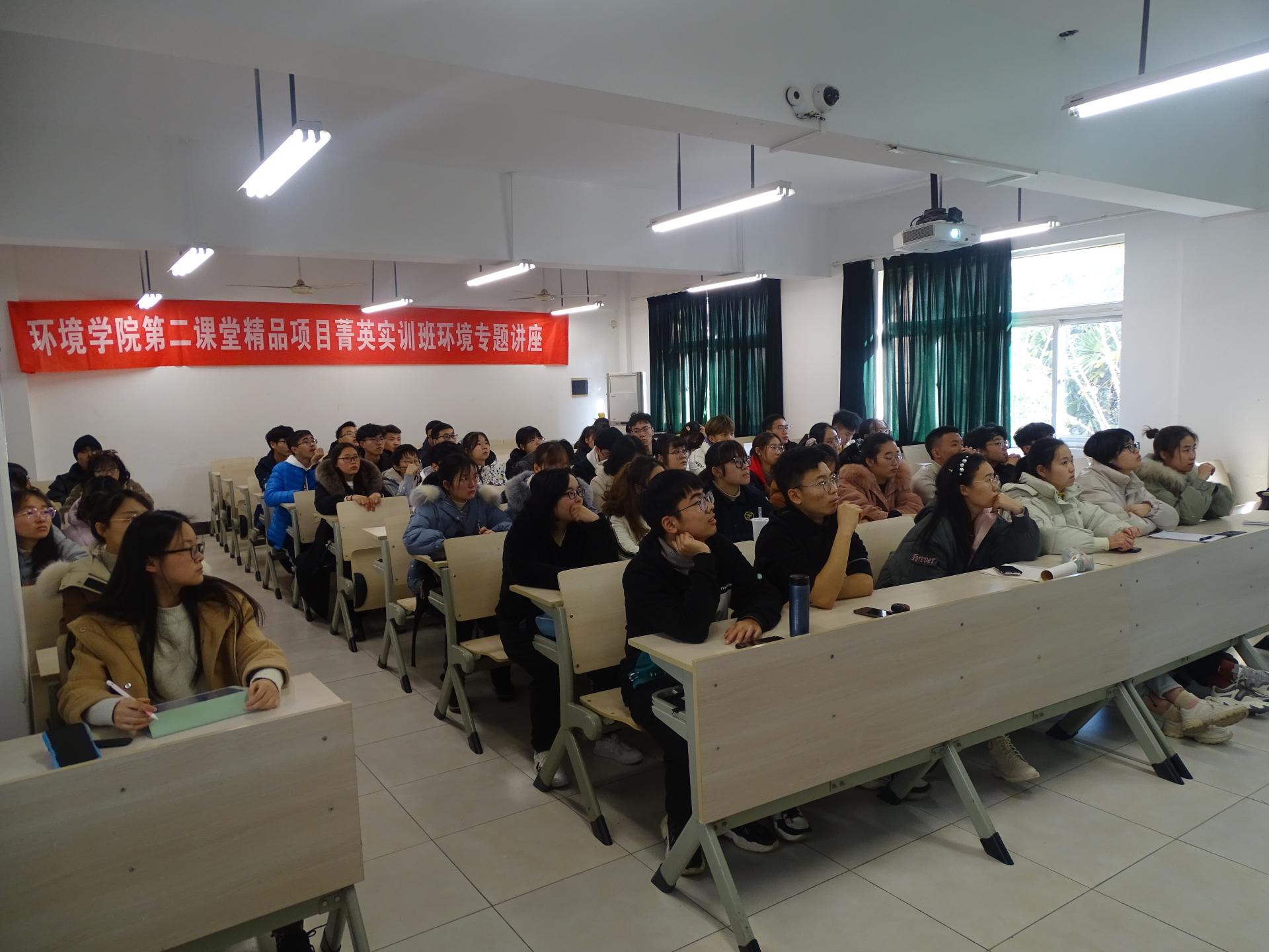 12月16日下午,环境科学与工程学院在厚学104教室开展了菁英实训班“环境科学技术与研究前沿”课程。本次课程邀请到了伟德victor1946环境科学与工程学院副教授何益得老师主讲,我院团委副书记张乐涵老师、新生辅导员杨静老师与菁英实训班全体学员共同参加。