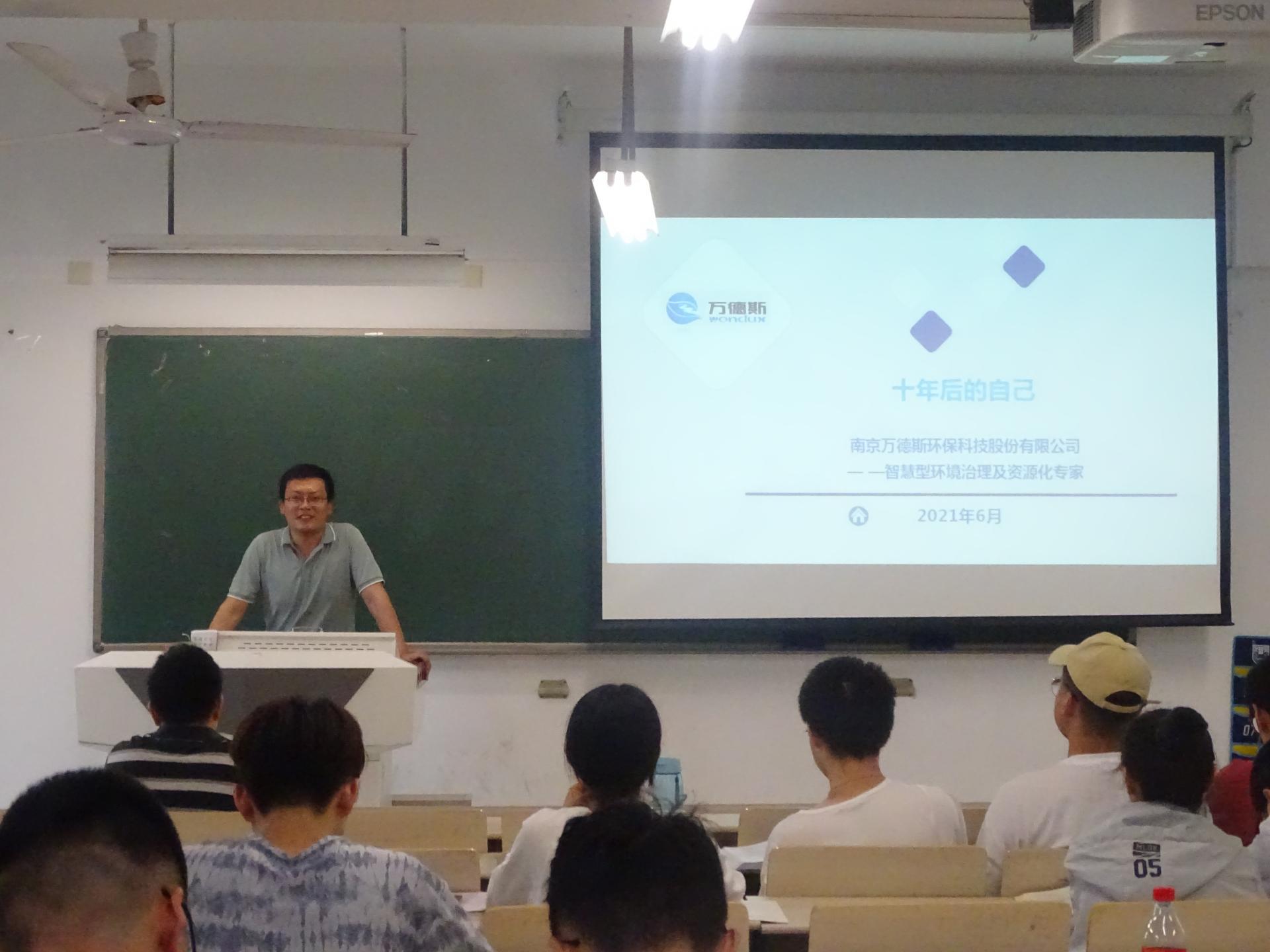 6月16日下午,伟德betvlctor1946源于英国2010届优秀校友、南京万德斯环保科技股份有限公司技术部经理王志磊,应邀为学院本科生作本学期第二场就业指导专题讲座。2021届部分毕业生、2022届全体毕业生生参加本次讲座,讲座由2021届毕业班辅导员陈亚会主持。