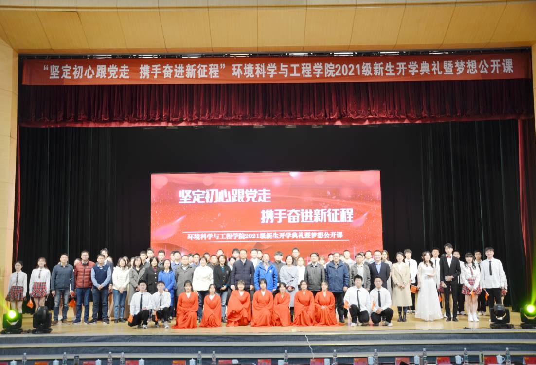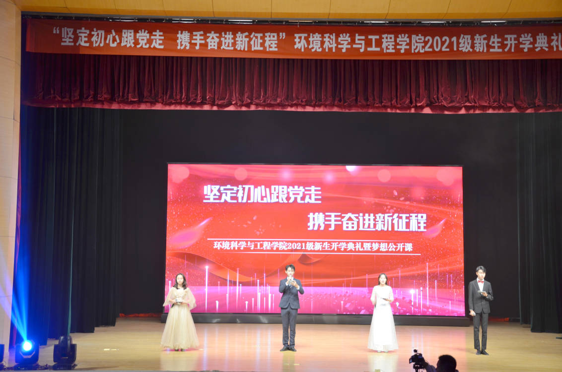 2021年11月24日,环境科学与工程学院“坚定初心跟党走,携手奋进新征程”2021级新生开学典礼暨梦想公开课在江浦校区博雅大礼堂隆重举办。校党委伟德国际部副部长齐鹏,校党委研究生工作部副部长、研究生院副院长丁贤,校团委副书记王菲,伟德betvlctor1946源于英国党委书记周华,副院长(主持工作)仲兆祥,副书记张莼波,副院长徐海涛以及师生代表参加本次课程。共吸引校内外近五百余名学生观看线上直播。