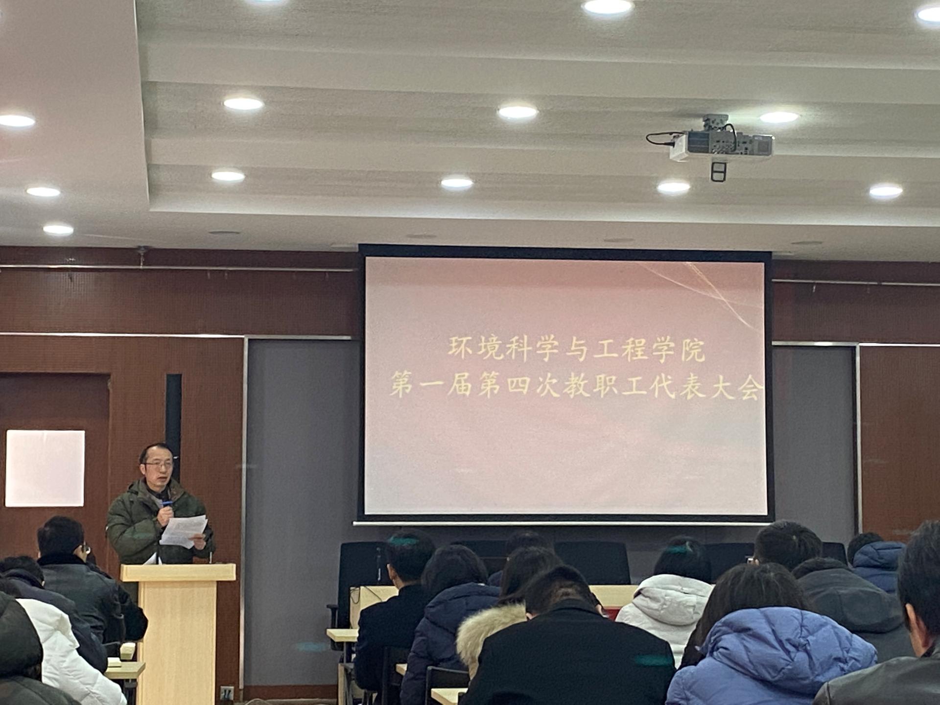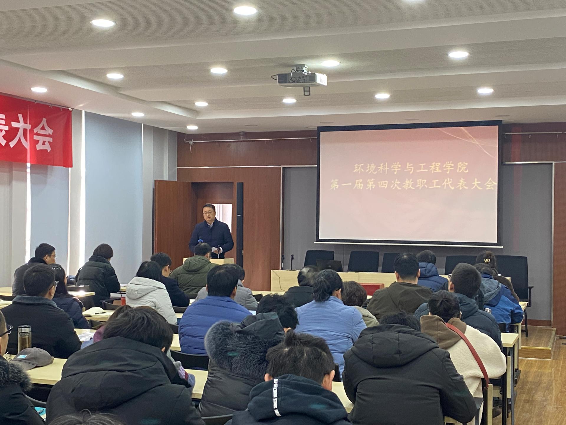 2021年12月29日下午,环境科学与工程学院在尚德楼A1-101报告厅召开第一届第四次教职工代表大会,全院教职工参加会议。会议由学院党委书记周华主持。