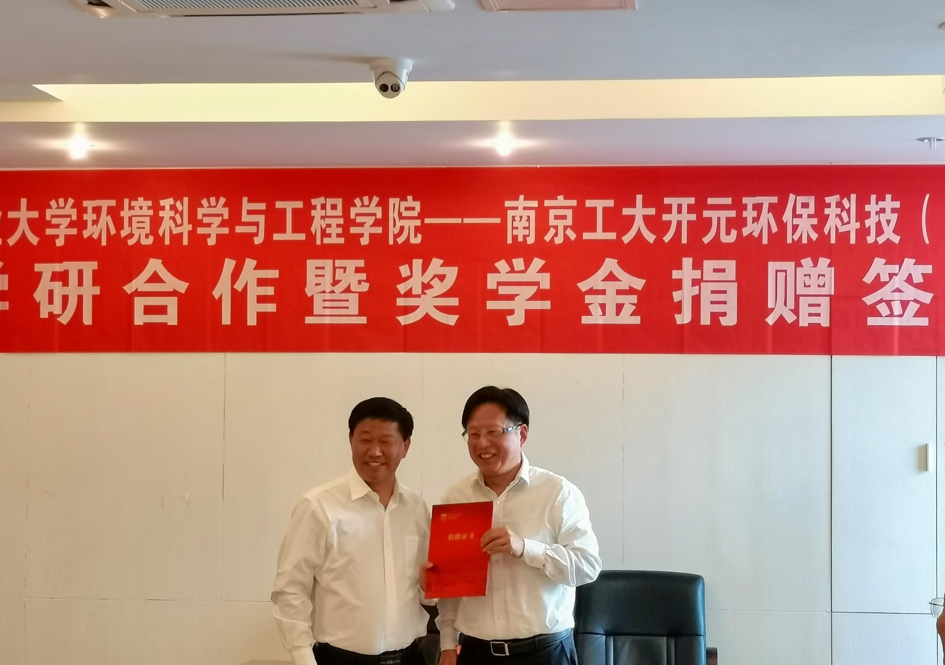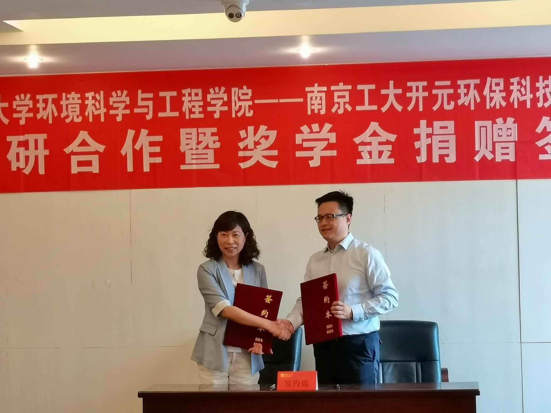 5月25日下午,环境科学与工程学院与南京工大开元环保科技(滁州)有限公司举行“工大开元”奖学金捐赠暨产学研合作签约仪式。南京工大开元环保科技(滁州)有限公司董事长孙轶民、总经理陈斌、研创中心总监唐明辉,我校教育发展基金会理事长高明、校教育发展基金会副秘书长凌红,伟德betvlctor1946源于英国党委书记周华、副院长(主持工作)仲兆祥、党委副书记张莼波、副院长张雪英及部分师生代表出席本次签约仪式。仪式由党委副书记张莼波主持。