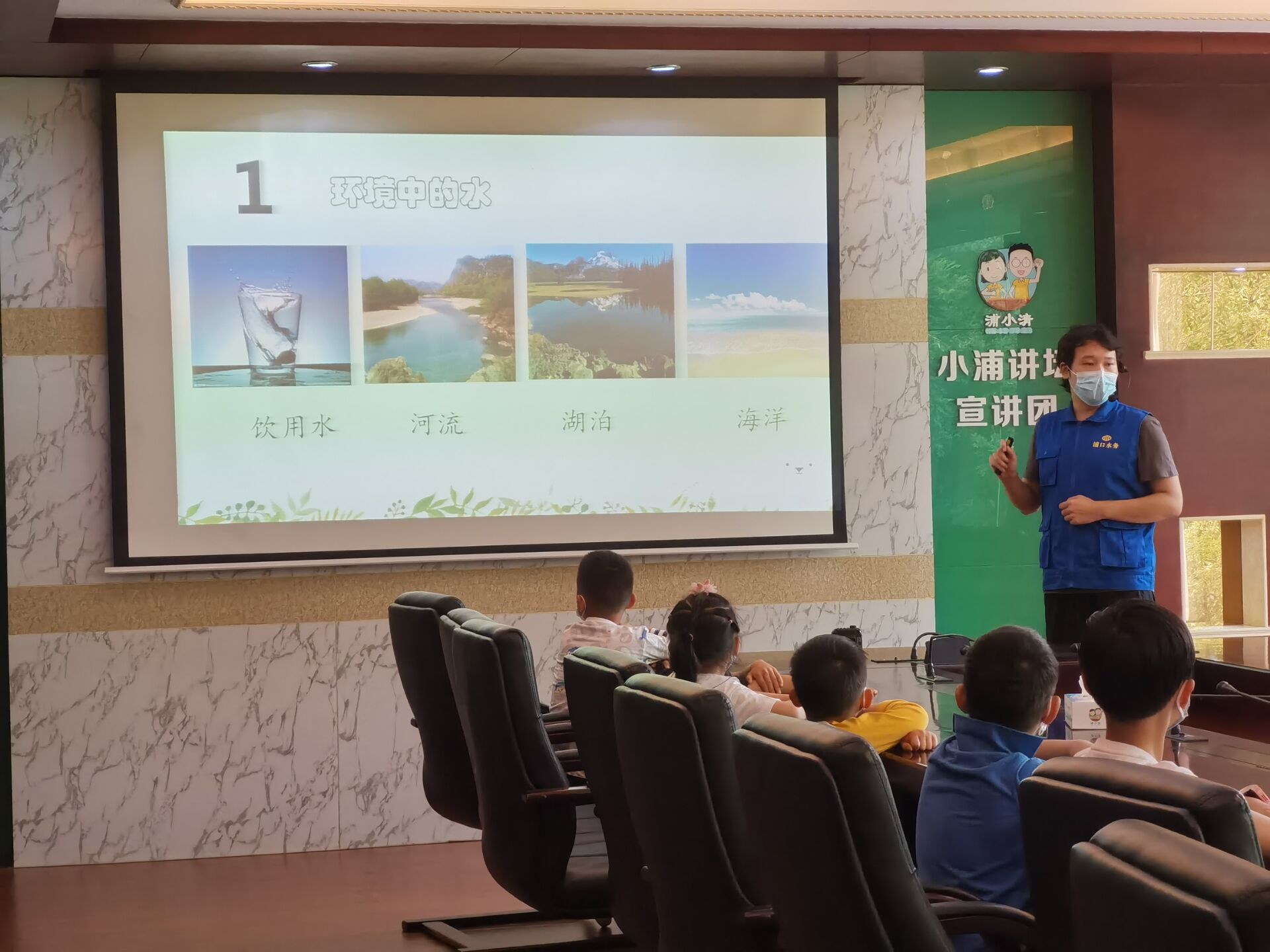 为深入践行习近平生态文明思想,树立人水和谐的节水理念,5月29日上午环境科学与工程学院联合浦口区水务局在象山湖节水教育基地展开了一场别开生面的水知识小课堂活动,浦口区水务局办公室副主任郭小娟、水务局浦小清志愿者、学院环保志愿服务队志愿者及浦口区16名小学生共同参加。