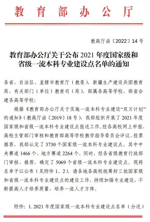 近日,教育部办公厅公布了2021年度国家级和省级一流本科专业建设点名单(教高厅函〔2022〕14号),我院“环境工程”专业入选国家级一流本科专业,这是继“环境工程”专业2021年获批江苏省一流本科专业后的重大进展。