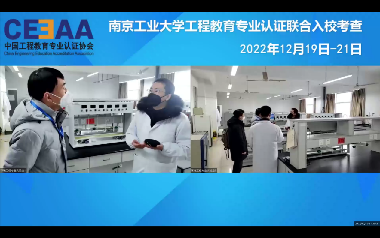 12月19日-21日,我院环境工程专业与材料学院金属材料工程一起迎来了中国工程教育专业认证协会专家组的联合现场考查。联合考查组由华东理工大学乐清华教授担任组长,环境工程专家组由同济大学周琪教授任组长、江南大学张光生教授、青芥一合碳汇(武汉)科技有限公司薛菲教授级高工任组员,中国环境科学学会韩佳慧高工任秘书。专业现场认证通过“线上+线下”联合形式展开,《华盛顿协议》国际观察员线上全程同步观摩本次考查工作。