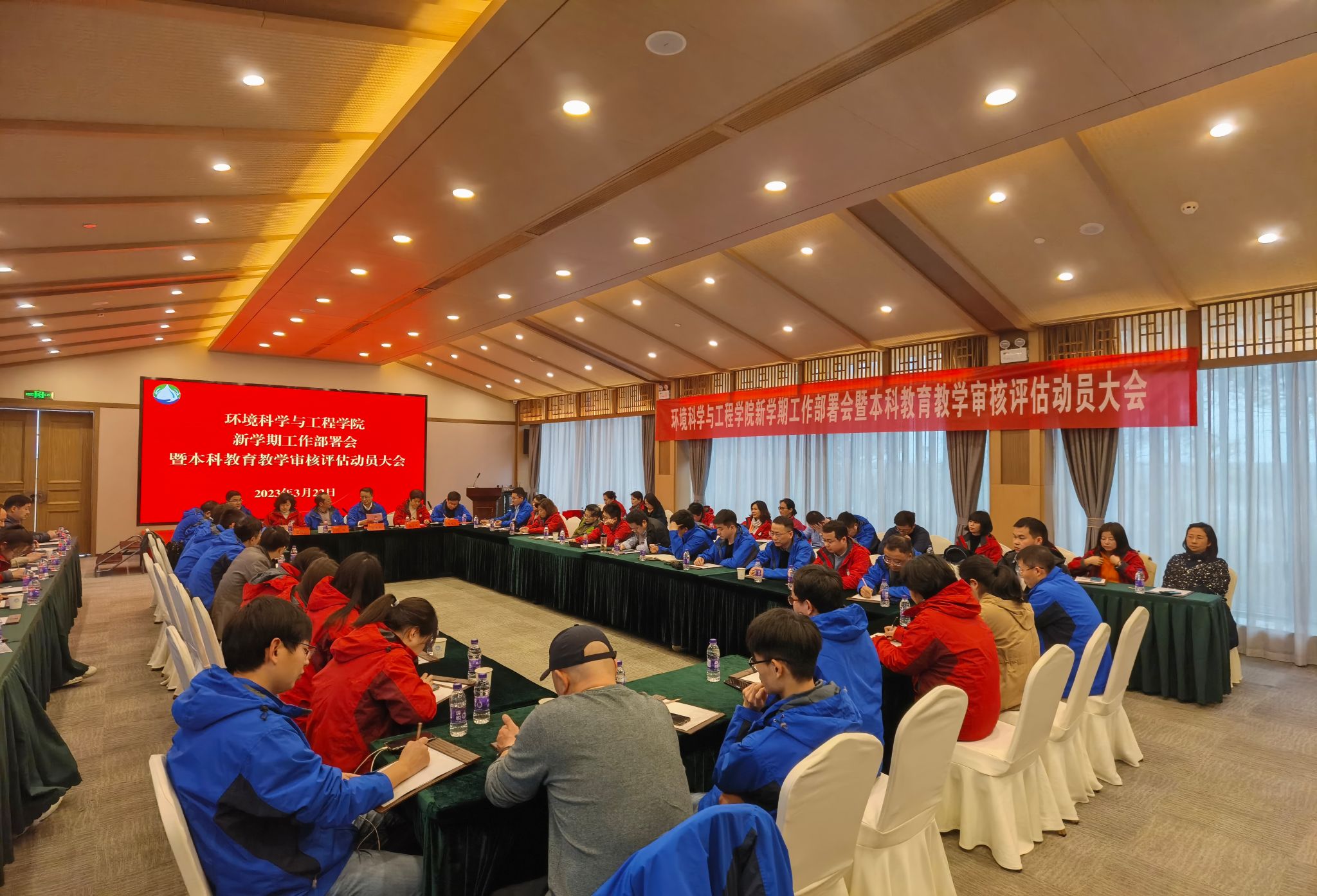 3月22日,环境科学与工程学院召开新学期工作部署会暨本科教育教学审核评估动员大会,学院全体院领导及全体教职员工参加会议。会议由学院党委书记周华主持。