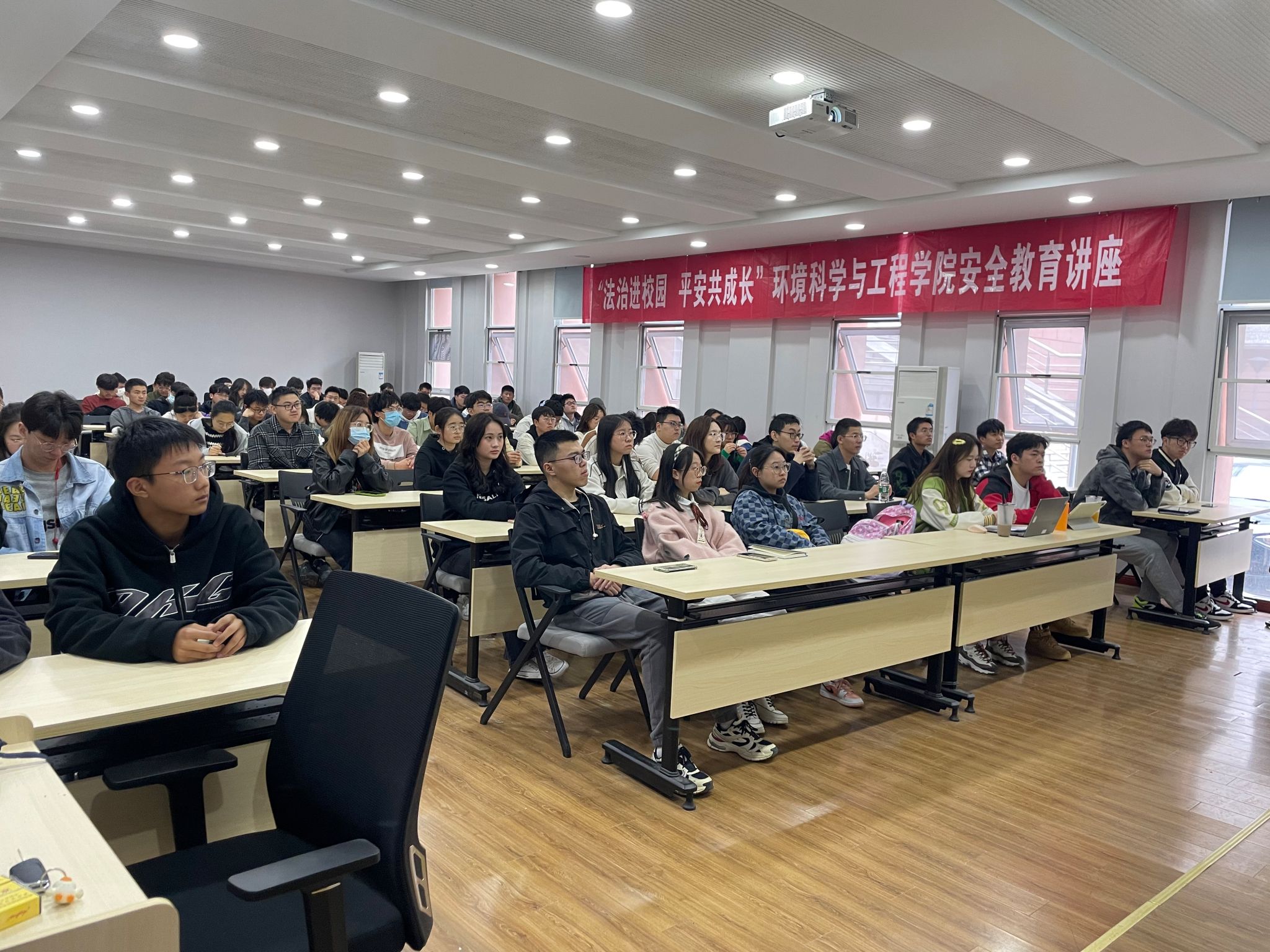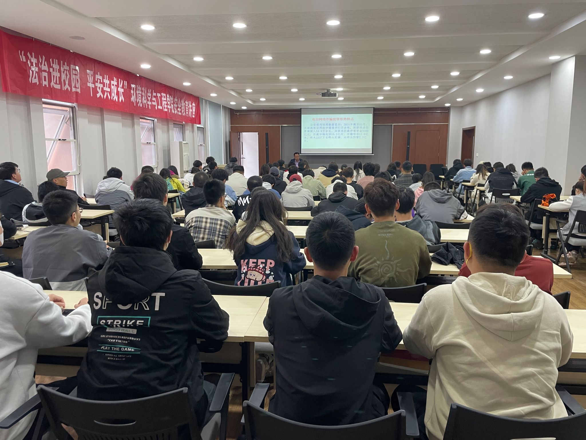 为进一步提升学生安全和法治意识,3月29日下午,环境科学与工程学院邀请校保卫处副处长徐东开展“法治进校园,平安共成长”安全教育主题讲座。学院各班生活委员、宿舍长等学生骨干参加活动。