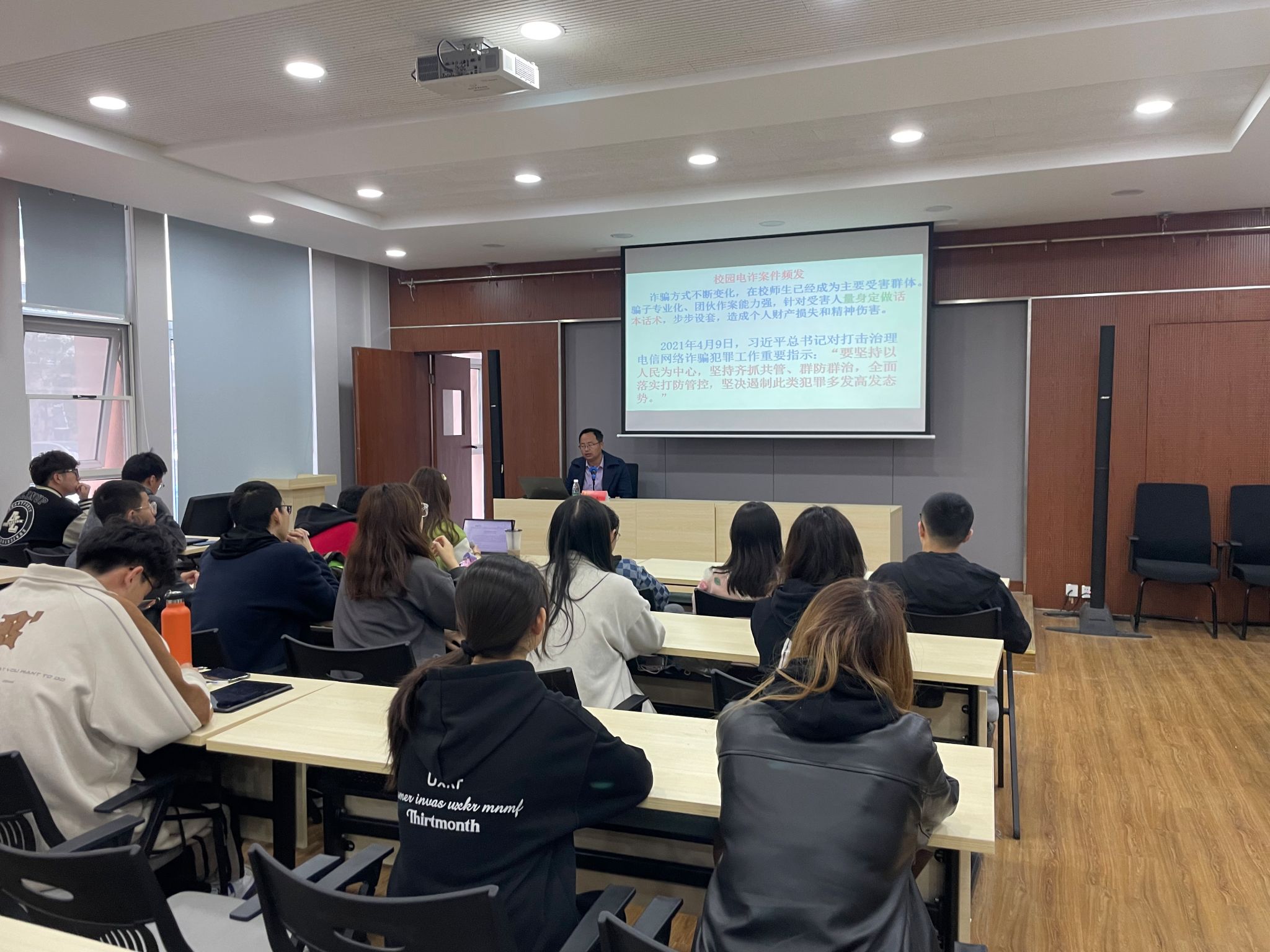 讲座中,徐东老师语言生动幽默,内容翔实丰富,通过列举真实案例,深入浅出地讲解了电信网络诈骗新型违法犯罪、交通安全知识、消防安全知识等校园安全法治问题。活动现场气氛热烈,同学们纷纷表示受益匪浅。