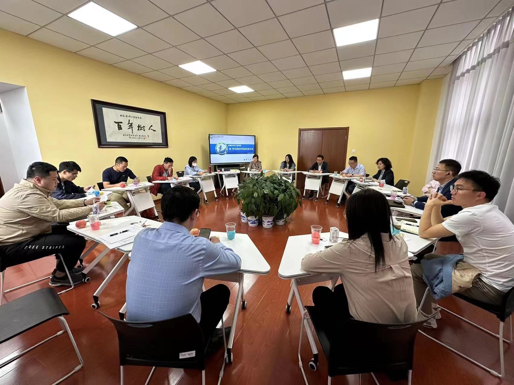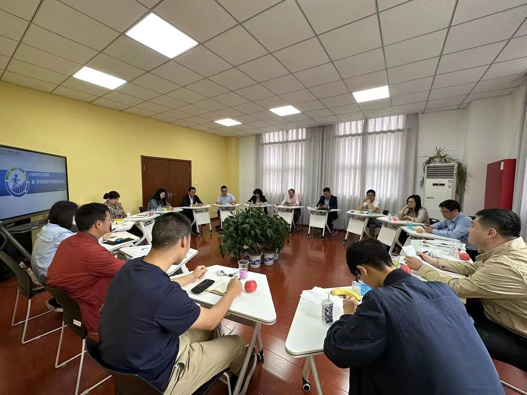 为加强教学与学工协同育人作用,5月12日,环境科学与工程学院在校工会亚青“餐叙时光”研讨室召开教-学共同体学风建设研讨会。学院党委书记周华、党委副书记张莼波、院长助理朱兆连、院办主任吴平、各系主任、全体班主任、全体辅导员参加会议。会议由张莼波副书记主持。