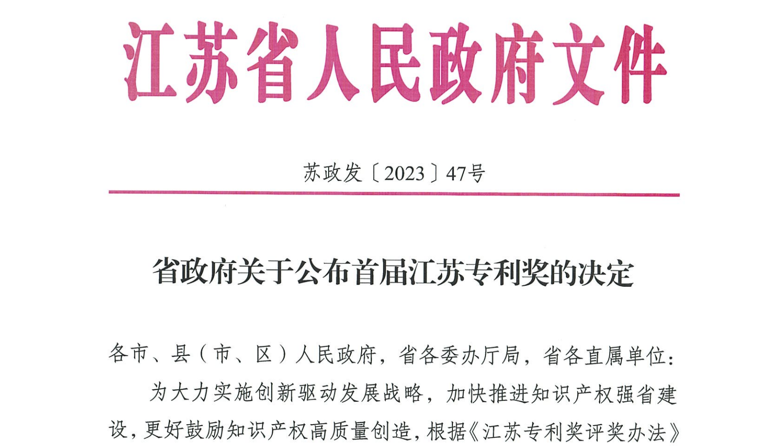专利奖是体现中国高校基础研究对技术创新的贡献能力,是衡量高校专利质量和技术创新水平的重要标准之一。江苏专利奖由江苏省人民政府于2022年批准设立,每两年评选一届,旨在深入贯彻落实省委、省政府关于加快知识产权强省建设的决策部署,对于推动知识产权高质量创造、高水平保护和高效益运用具有重要意义。