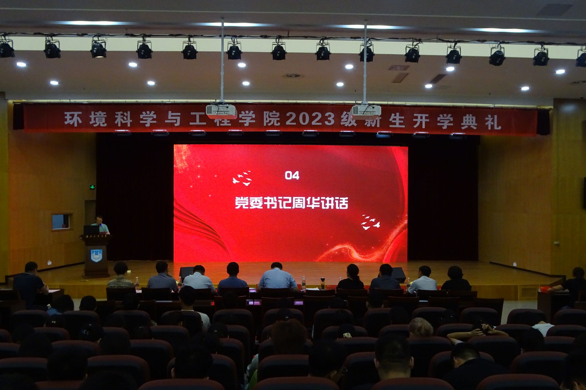 9月12日上午,环境科学与工程学院2023级新生开学典礼在笃学楼报告厅举行。全体院领导、各系负责人、学院部分老师以及本科生新生、研究生新生300余人参加开学典礼。典礼由2023级本科生新生辅导员戚旸主持。