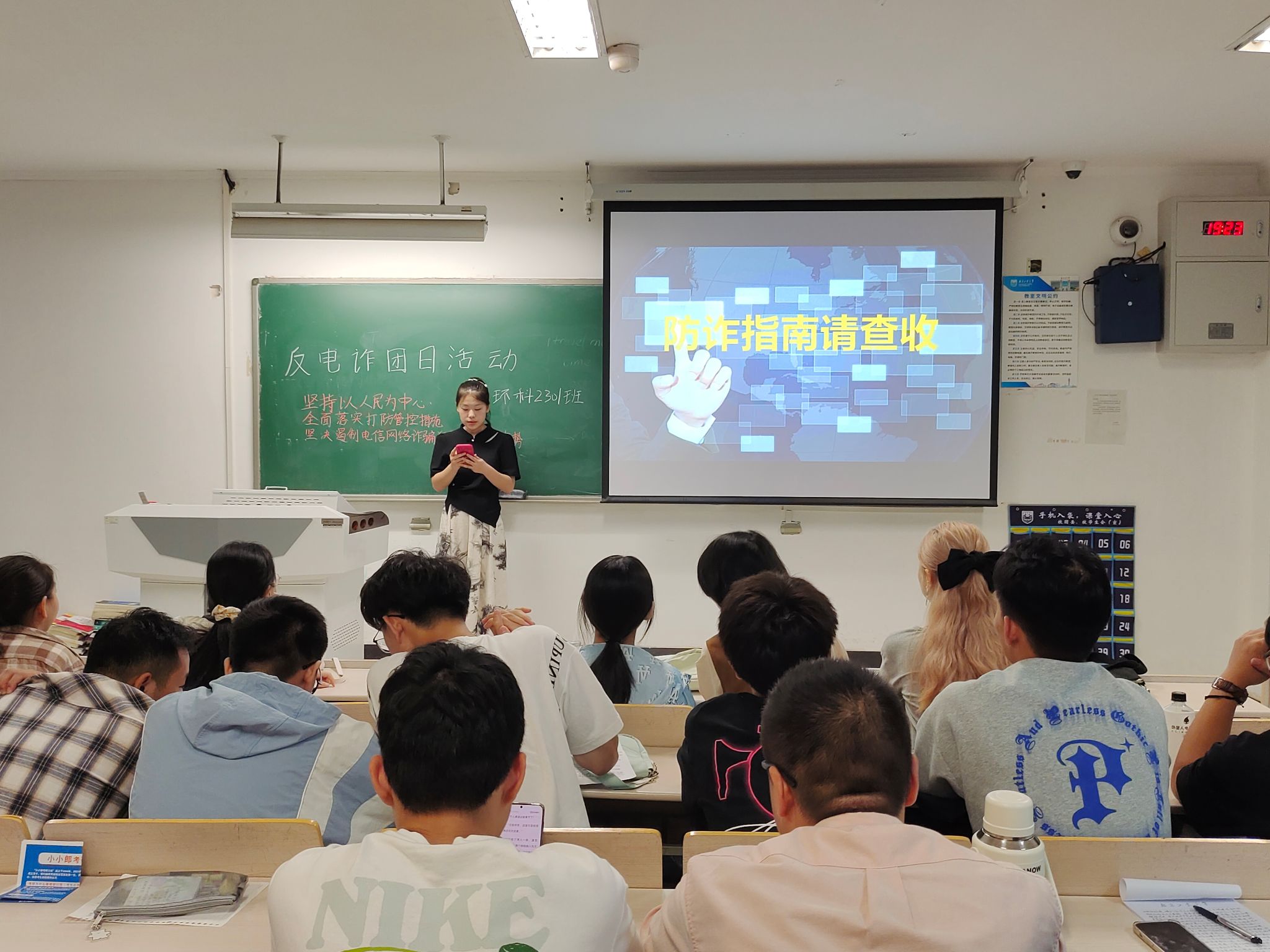9月9日,学院邀请我校保卫处梁俊老师开展安全教育专题讲座,讲座围绕维护国家安全、防范电信网络诈骗等内容,梁老师提醒学生“慎接慎点慎信”一些不明来电,务必做到不透露个人信息、不转账。9月13日,学院组织全体新生开展反诈教育主题年级会,9月14-15日,新生班级陆续开展反诈主题团日活动,系列安全主题活动的开展有助于提升学生法制素养,增强安全防范意识,进一步筑牢全员反诈“防火墙”。