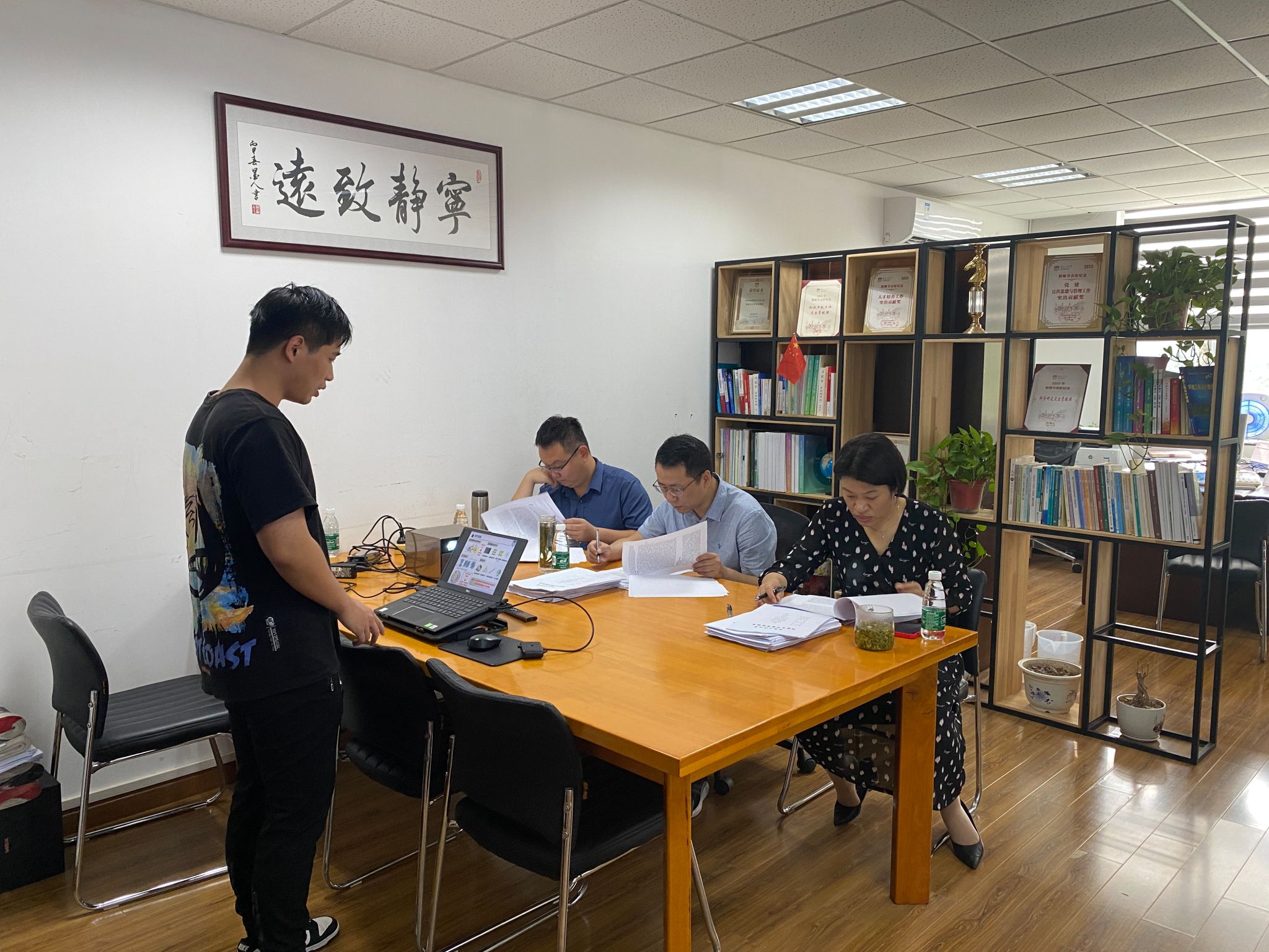 本次开题报告会共分5组进行,全部采取线下答辩形式。学生从研究背景、选题意义、研究内容、技术路线、预期成果等方面进行了汇报,评审老师从课题创新性、选题可行性、研究思路合理性、书写规范性等角度进行了评审指导。