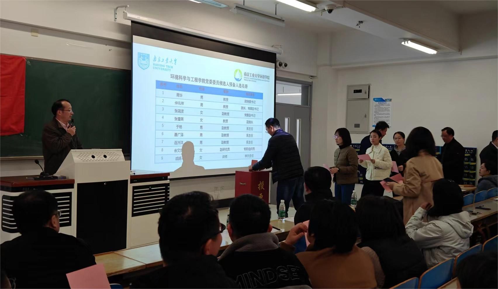 2023年11月19日下午,环境科学与工程学院党员大会在厚学楼209多媒体教室召开,选举产生新一届党委委员。校党委副书记、校长蒋军成和校党委组织部副部长沈光莅临大会指导,大会由学院书记周华主持。