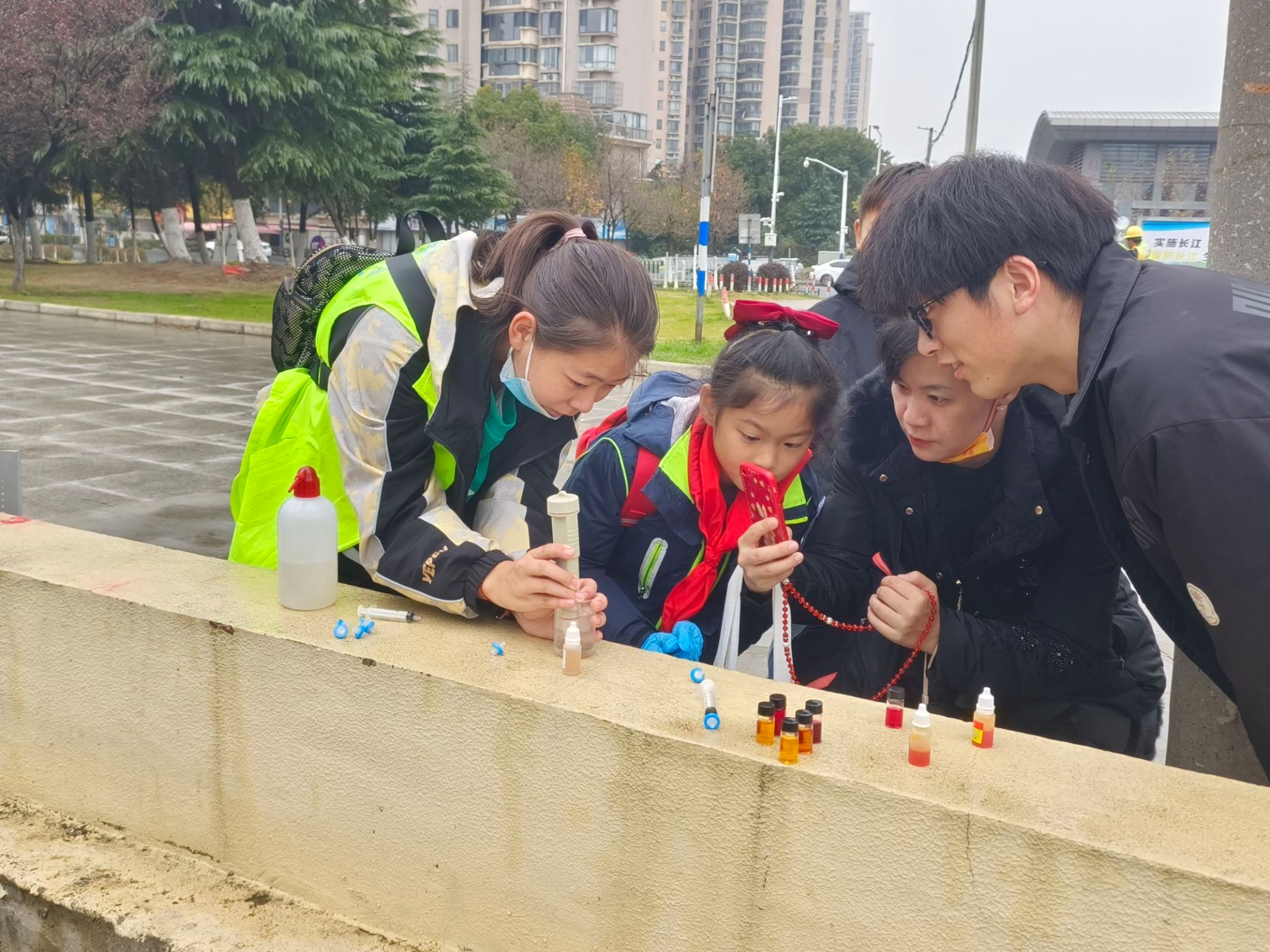 课堂上,我院学子通过ppt讲解配合实物展示,将科普小知识融入课堂互动中,通过有趣的教学方法激发小朋友们的学习乐趣,课堂氛围十分活跃,小朋友们认真听讲,积极举手回答问题,学习了水循环、生活用水、污水处理厂原理等相关知识。此外,我院学生还组织了“青年河长”巡河活动,在“河小青”生态环境实践服务队队员们的指引下,社区小朋友们都化身水质检测员,初步检测了水中重金属含量、硬度、pH值、亚硝酸盐含量等。实践活动中,小朋友们认真参与,大胆提问,进一步了解并实践了水质检测的相关知识。