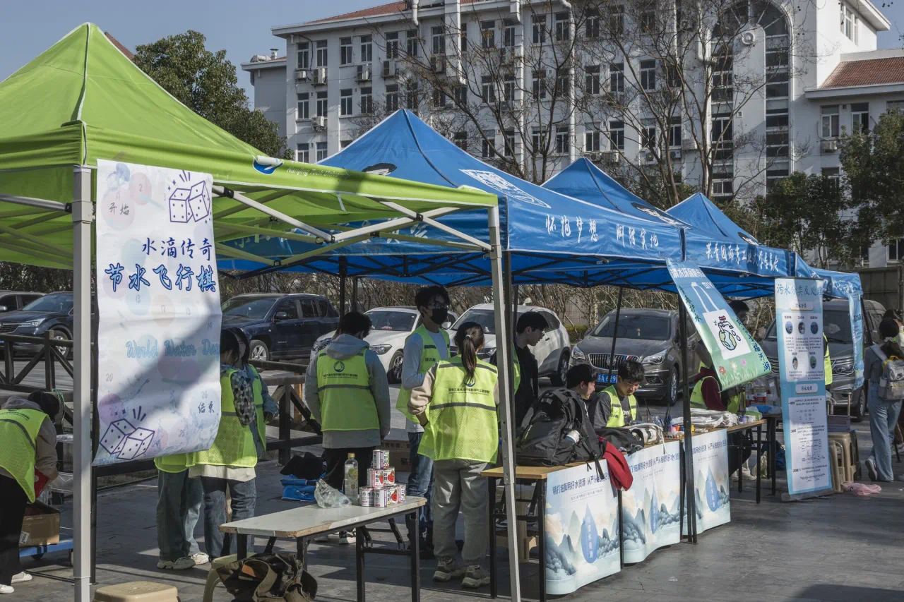 3月21日-3月22日,环境科学与工程学院与浦口区水务局在东苑开展“水之守护者计划”快闪活动,现场人头攒动、热闹非凡:“‘植’此青绿,拥抱春天”生态瓶制作,让参与者亲自动手打造模拟水环境的生态瓶;水质快速检测体验,用简单的实验操作直观获取校园水体水质情况;节水飞行棋,小游戏和节水知识快问快答相结合,寓教于乐、生动有趣……此外,现场还开展节水宣讲、发放节水宣传手册,旨在通过沉浸式互动体验进一步提升全校师生的节水、护水、爱水意识。