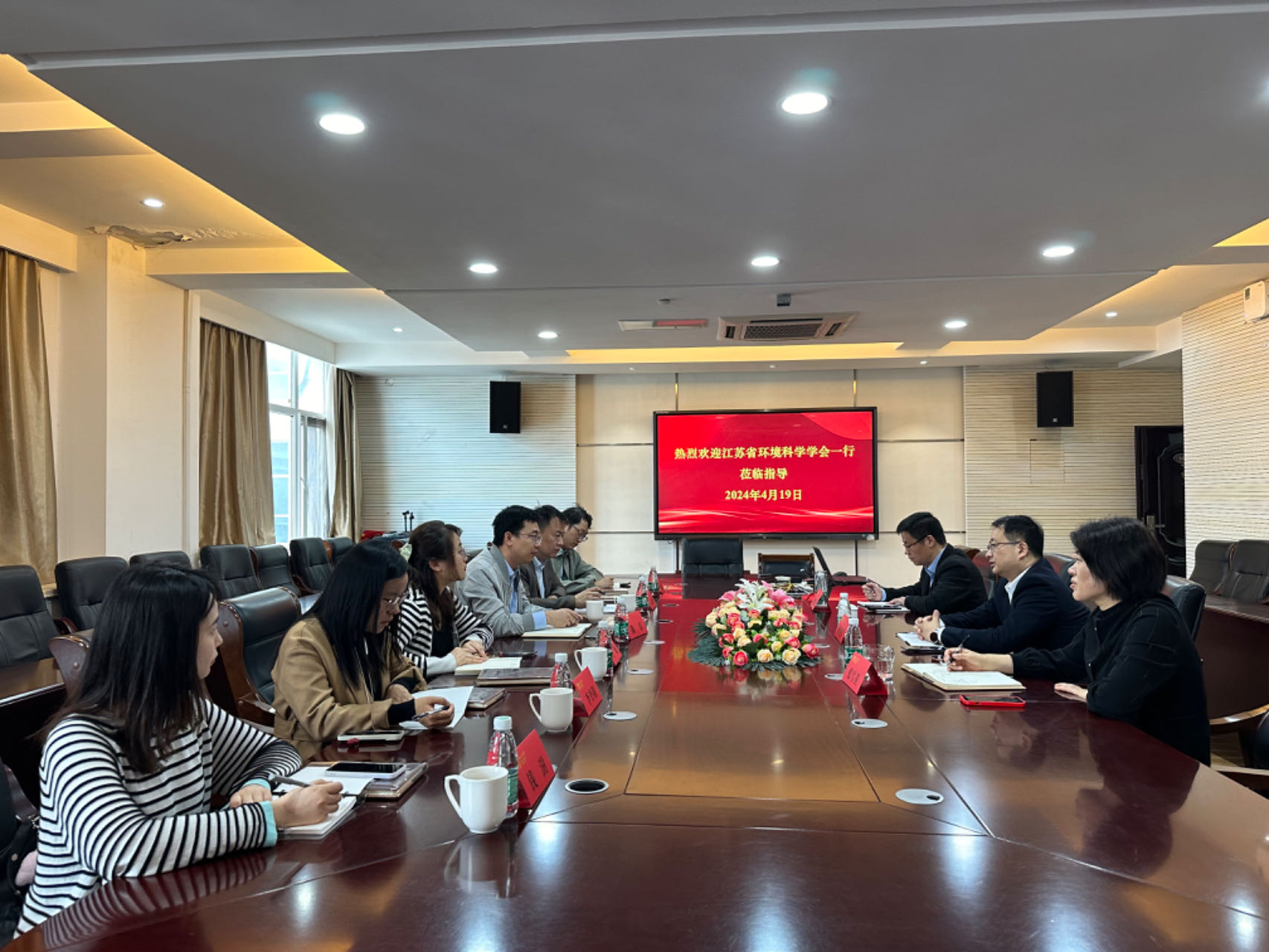 4月19日上午,江苏省环境科学学会秘书长陈乐、副秘书长王敏率综合部、业务部、监测分会负责人以及南京万德斯环保科技股份有限公司总经理袁道迎来我院开展调研。环境科学与工程学院院长仲兆祥、副院长张雪英、院长助理朱兆连陪同此次交流座谈。座谈会由仲兆祥院长主持。