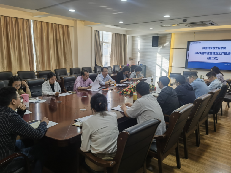 5月15日下午,环境科学与工程学院召开第二次2024届毕业生就业工作推进会,学院领导班子出席会议,各系负责人、全体辅导员参加会议。会议由院长仲兆祥主持。