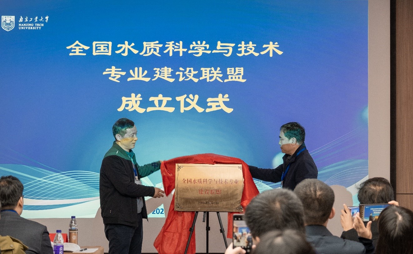 会议期间,举行了全国水质科学与技术专业建设联盟成立及揭牌仪式。居沈贵和呼和浩特民族学院化学与环境工程学院院长李福全共同为联盟揭牌。我院作为发起单位当选为联盟理事长单位,张雪英当选为联盟第一届理事会理事长、朱兆连当选为副理事长、连洲洋当选为秘书长。副理事长南京水务集团江心洲污水处理厂厂长严小明代表联盟产学研合作单位作了交流发言。
