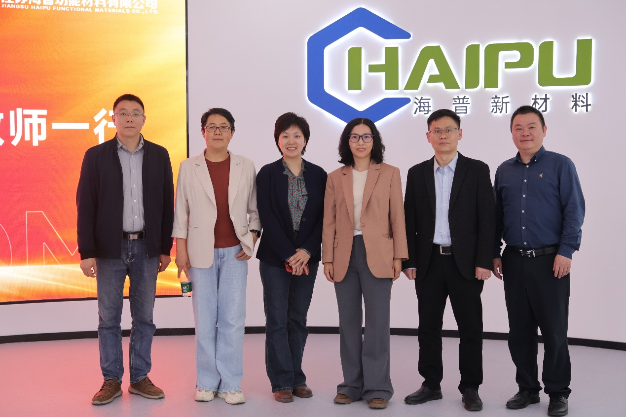 随后,学院一行来到江苏海普功能材料有限公司,参观了该公司的多功能业务展厅,总经理石洪雁介绍了公司开发的离子交换、吸附和膜分离材料在环保治理、资源循环利用、新能源和生物医药等行业的应用现状。张莼波介绍了学院学生培养与就业情况,朱兆连介绍了学院的发展概况。随后,双方围绕特色人才培养、企业定点招聘和学生实习实践等方面展开交流。