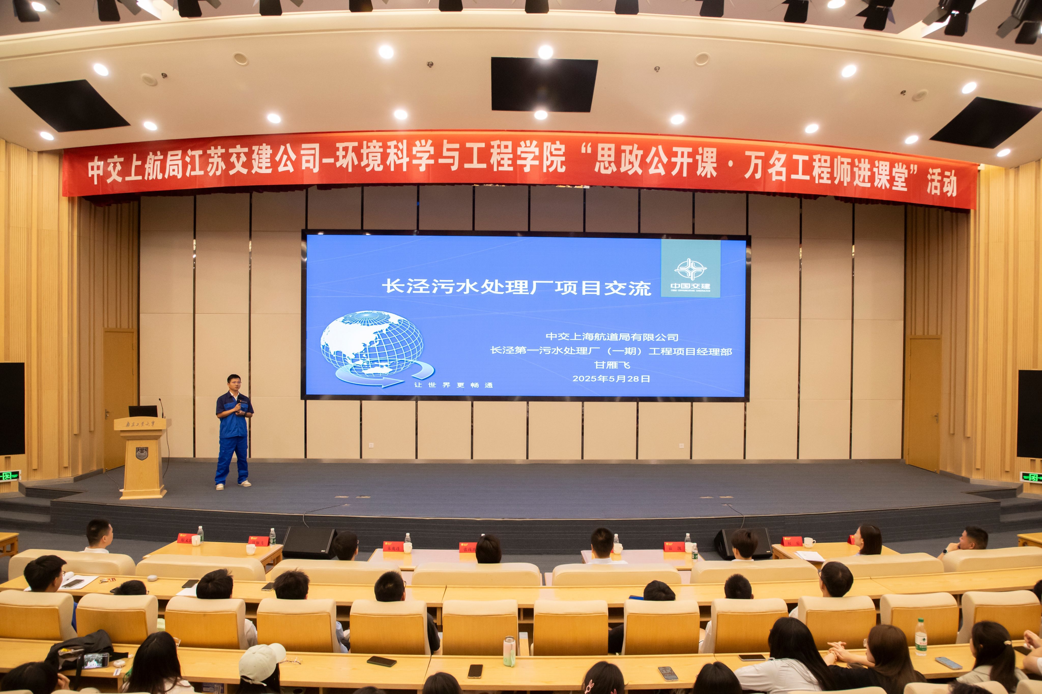 5月28日,“万名工程师进校园”活动在我校弘毅楼报告厅举行。活动由中交上航局江苏交建公司、环境科学与工程学院共同主办,中交上航局江苏交建公司党委副书记、纪委书记、工会主席龚明,环境科学与工程学院党委副书记张莼波,院长助理朱兆连出席活动。