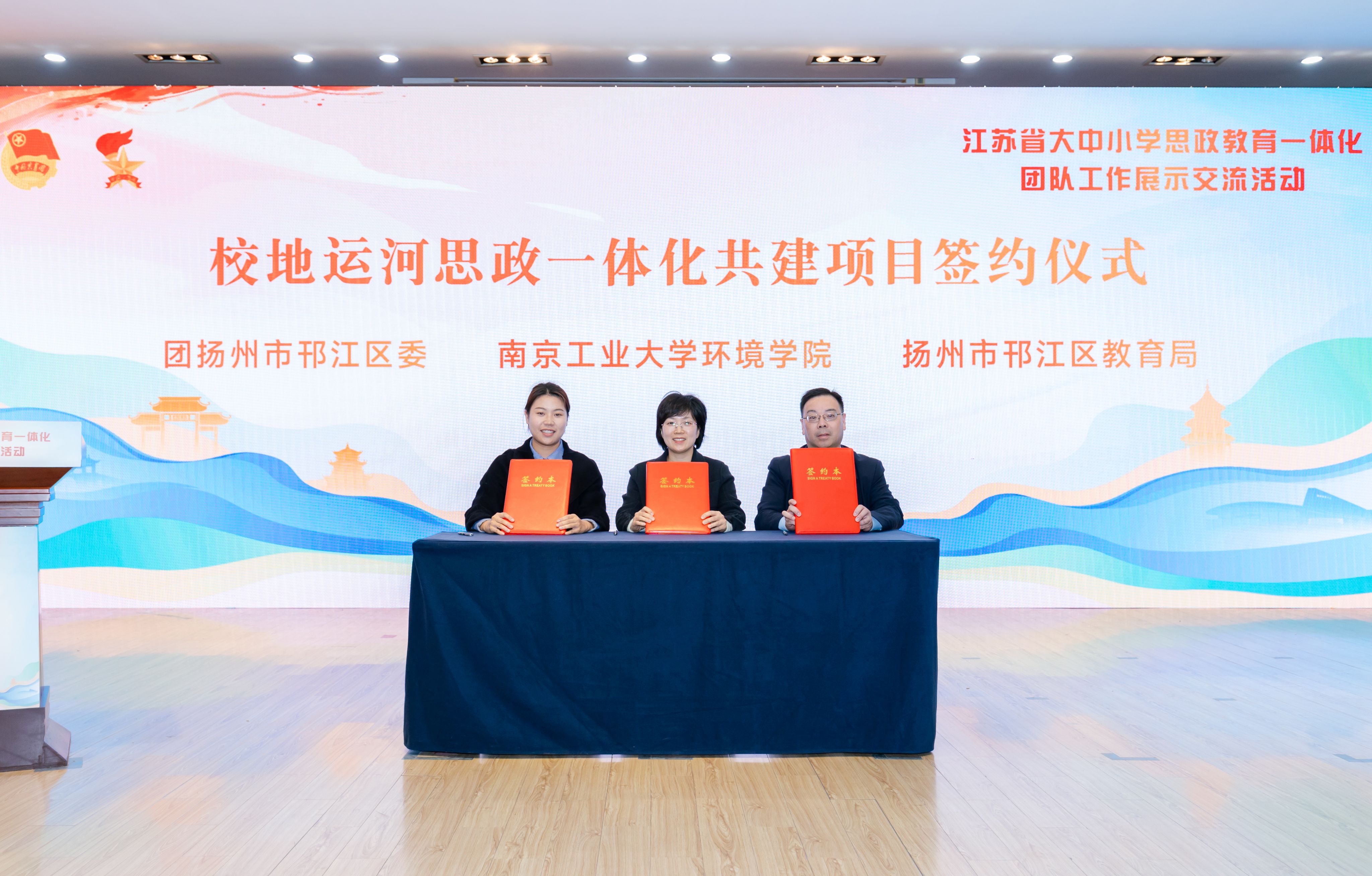 活动中,环境科学与工程学院党委副书记张莼波介绍了合作框架与构想。邗江团区委、邗江区教育局与环境科学与工程学院签署校地运河思政一体化共建协议,通过组建运河思政团队工作联盟,开展运河文化“青春领路人”实践活动,研发运河思政文创作品等形式进行深度合作,让千年运河成为滋养青少年成长的“活教材”。活动现场还发布《全省大中小学思政教育一体化团队工作指引》,相关单位作展示交流。
