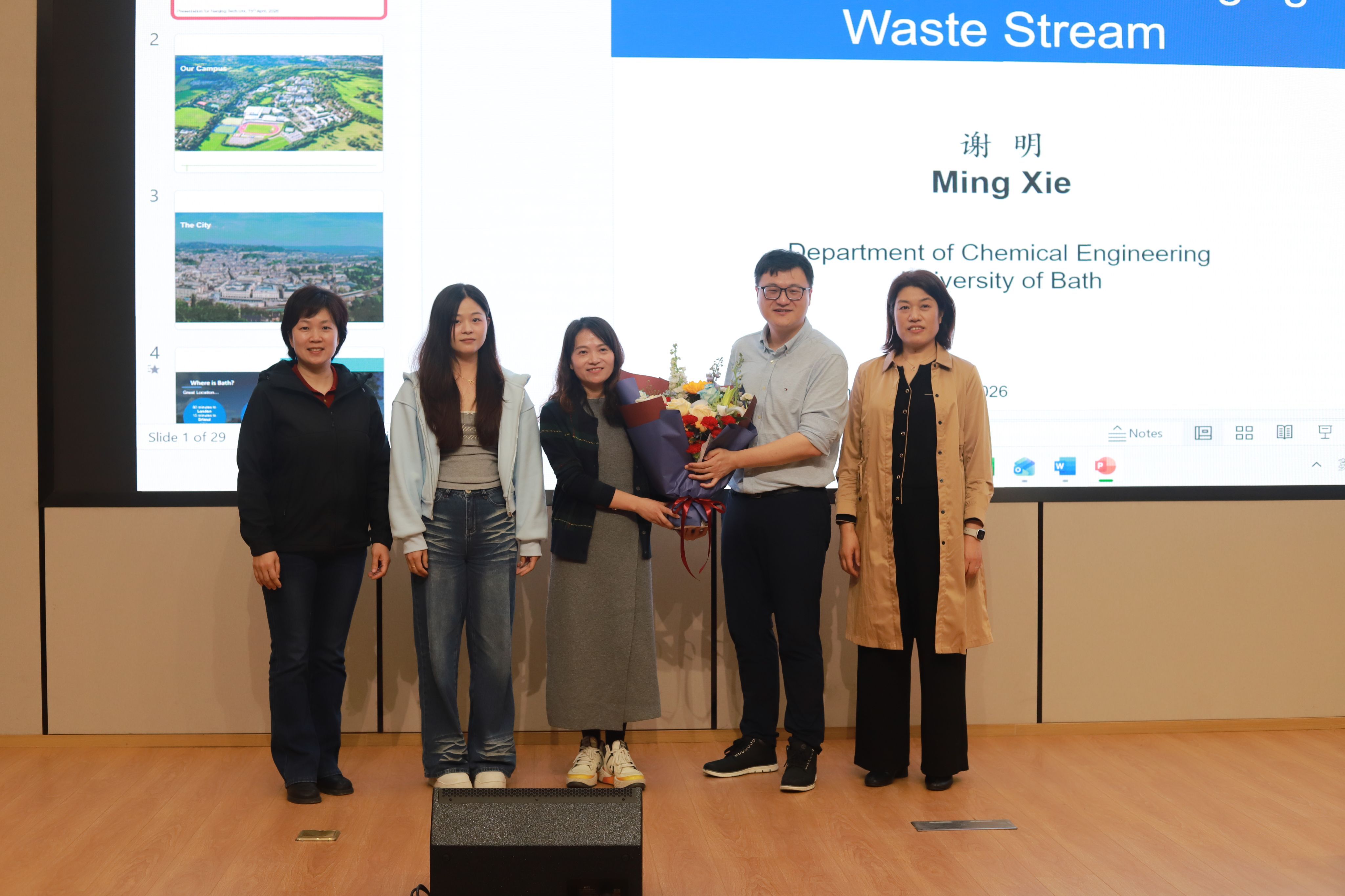 2025年4月15日下午,英国巴斯大学化学工程系助理教授(副教授),我校杰出校友谢明博士应邀访问环境科学与工程学院,在化学学科楼四楼报告厅做了生涯规划报告会和学术讲座。学院师生代表参加报告会,报告会由学院院长张雪英主持。