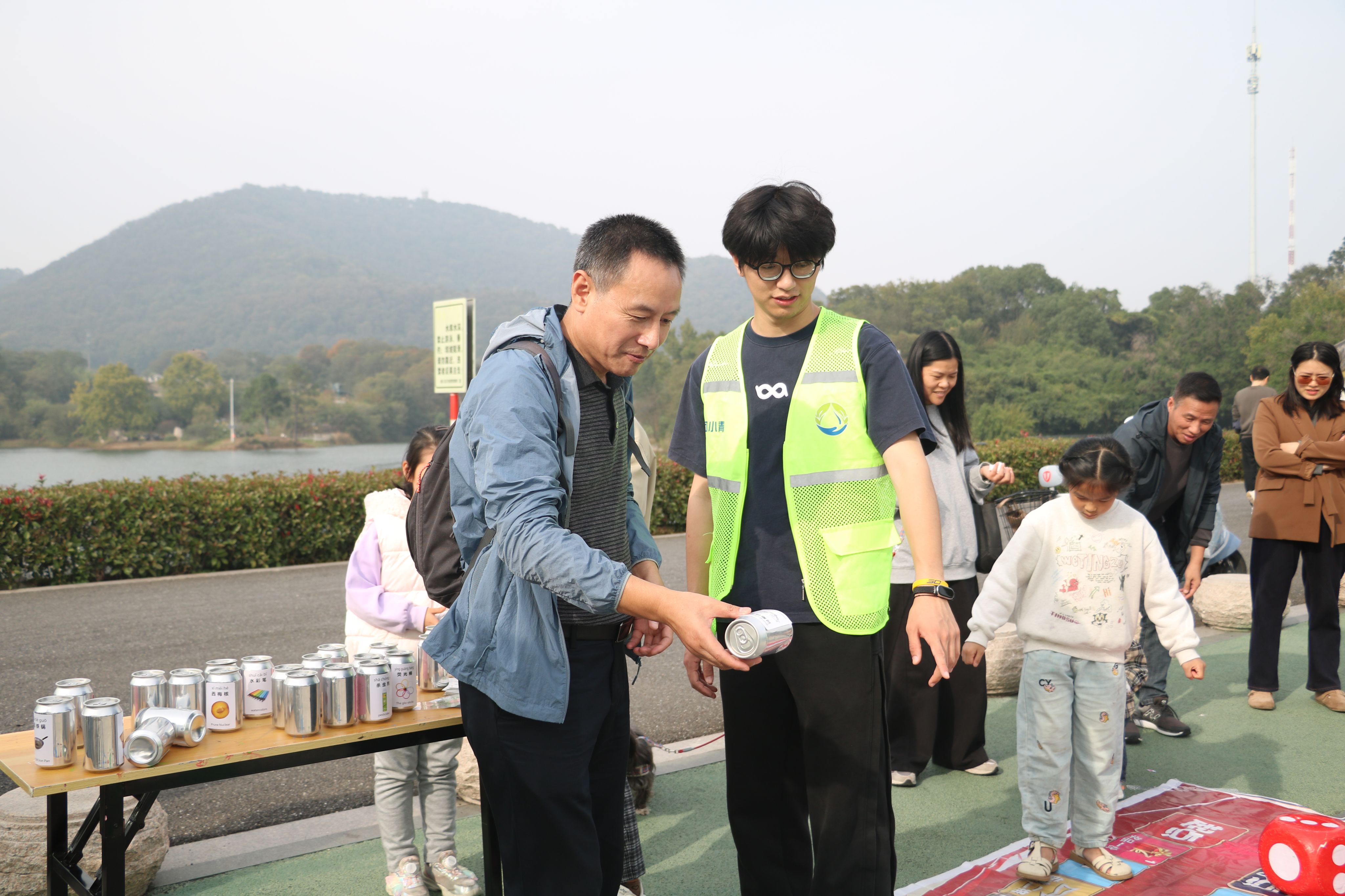 本次活动以“‘罐’焕新生,‘环’抱自然”为主题,现场设立四个互动体验区域,内容丰富、形式多样,吸引了众多市民和游客积极参与。在“罐”筑新生手工区,学生党员现场演示如何将废弃易拉罐改造为实用美观的笔筒和盆栽,生动展现“变废为宝”的环保理念。在指导市民动手实践的同时,党员志愿者还详细讲解资源循环利用的重要意义,切实增强参与者的环保意识。此外,活动还设置了“罐”问新知趣味问答和“罐”洁分类投递游戏等环节,巧妙融入水环境保护、垃圾分类等相关知识,使参与者在轻松愉快的氛围中学习生态知识、提升环保素养。